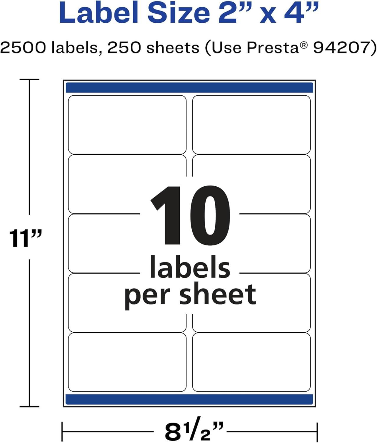 Avery Matte White Rectangle Labels, Sure Feed Technology, 2″ x 4″, 250 Matte White Printable Labels(2 500 Labels)