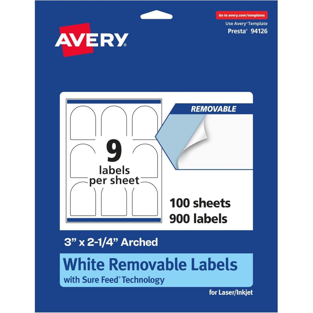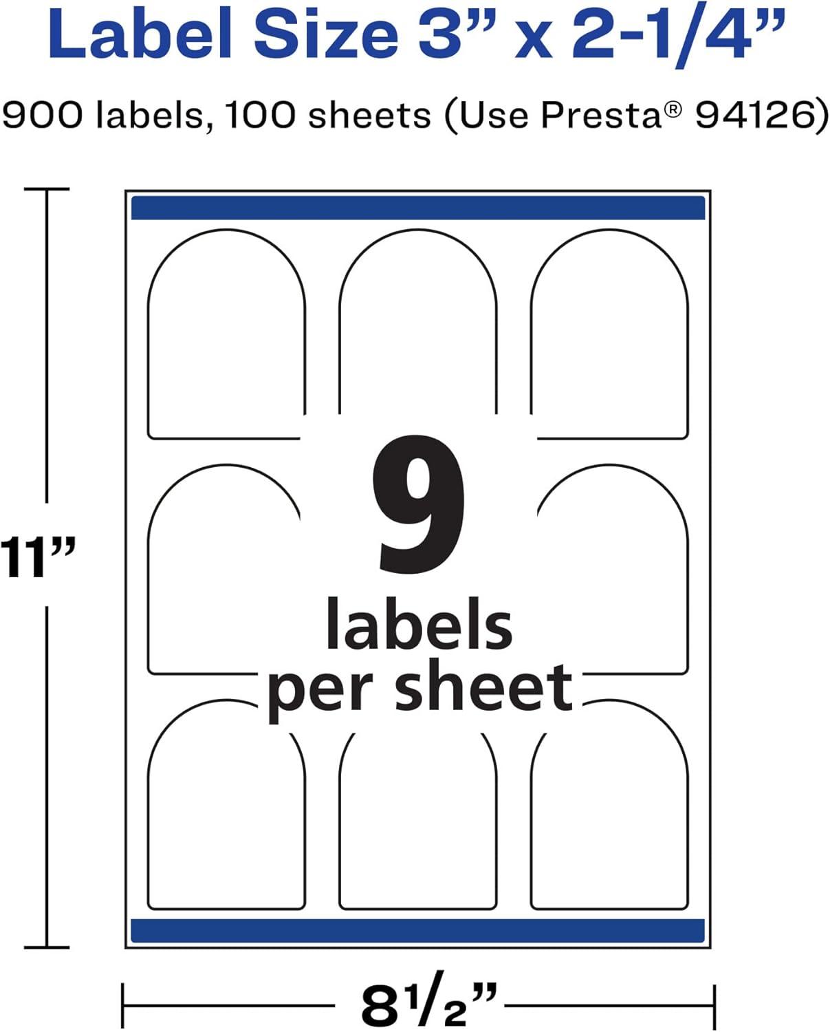 Avery Matte White Removable Arched Labels, Sure Feed Technology, Print-to-The-Edge, 3″ x 2.25″, 135 Removable Labels, Laser/Inkjet Printable(900 labels)