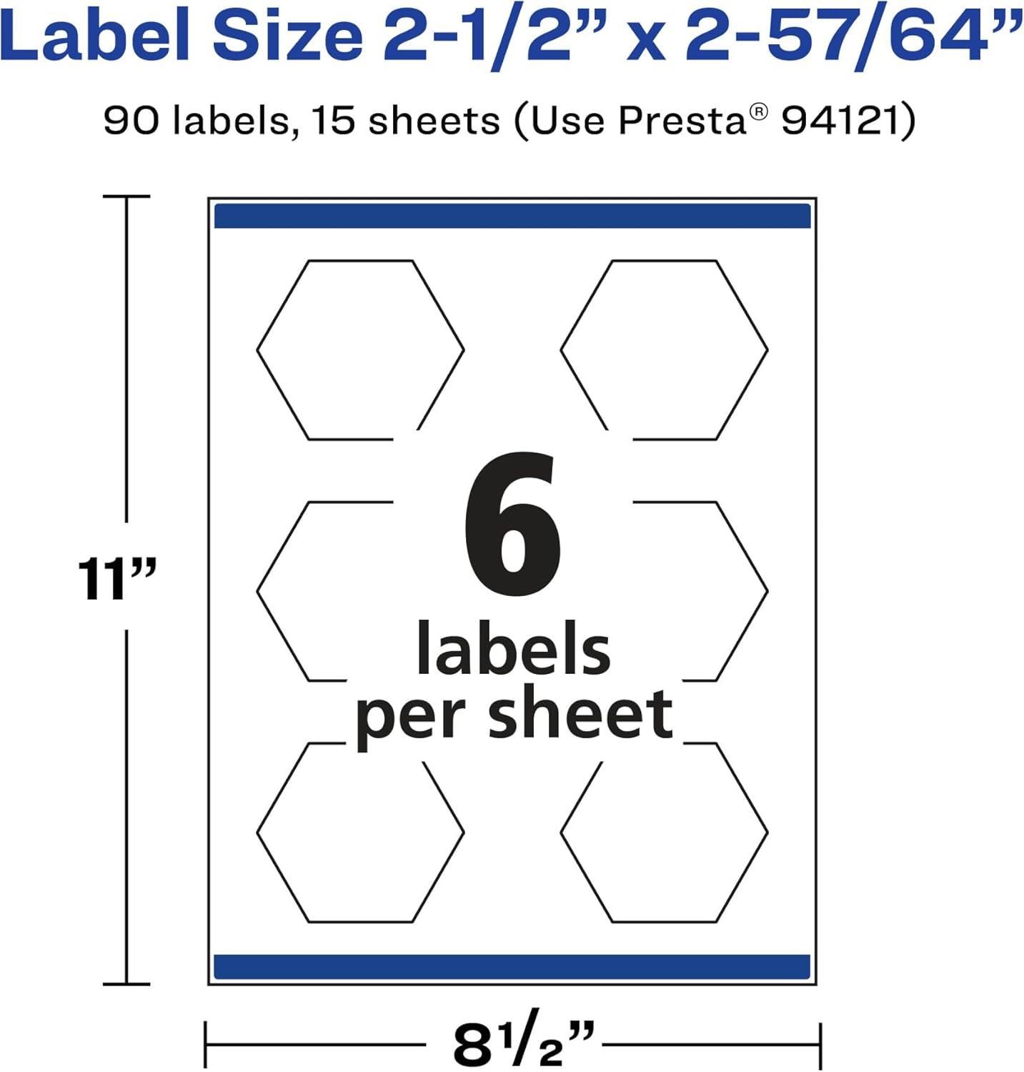Avery Matte White Removable Hexagon Labels, Sure Feed Technology, Print-to-The-Edge, 2-1/2″ x 2-57/64″, 90 Removable Labels, Laser/Inkjet Printable(90 labels)