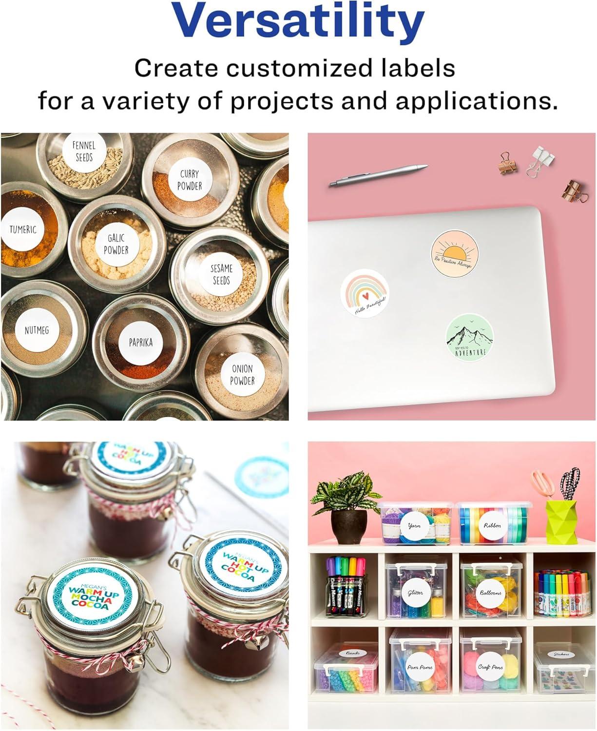Avery Matte White Removable Round Labels, Sure Feed Technology, Print-to-The-Edge, 3″ Diameter, 90 Removable Labels, Laser/Inkjet Printable(600 labels)