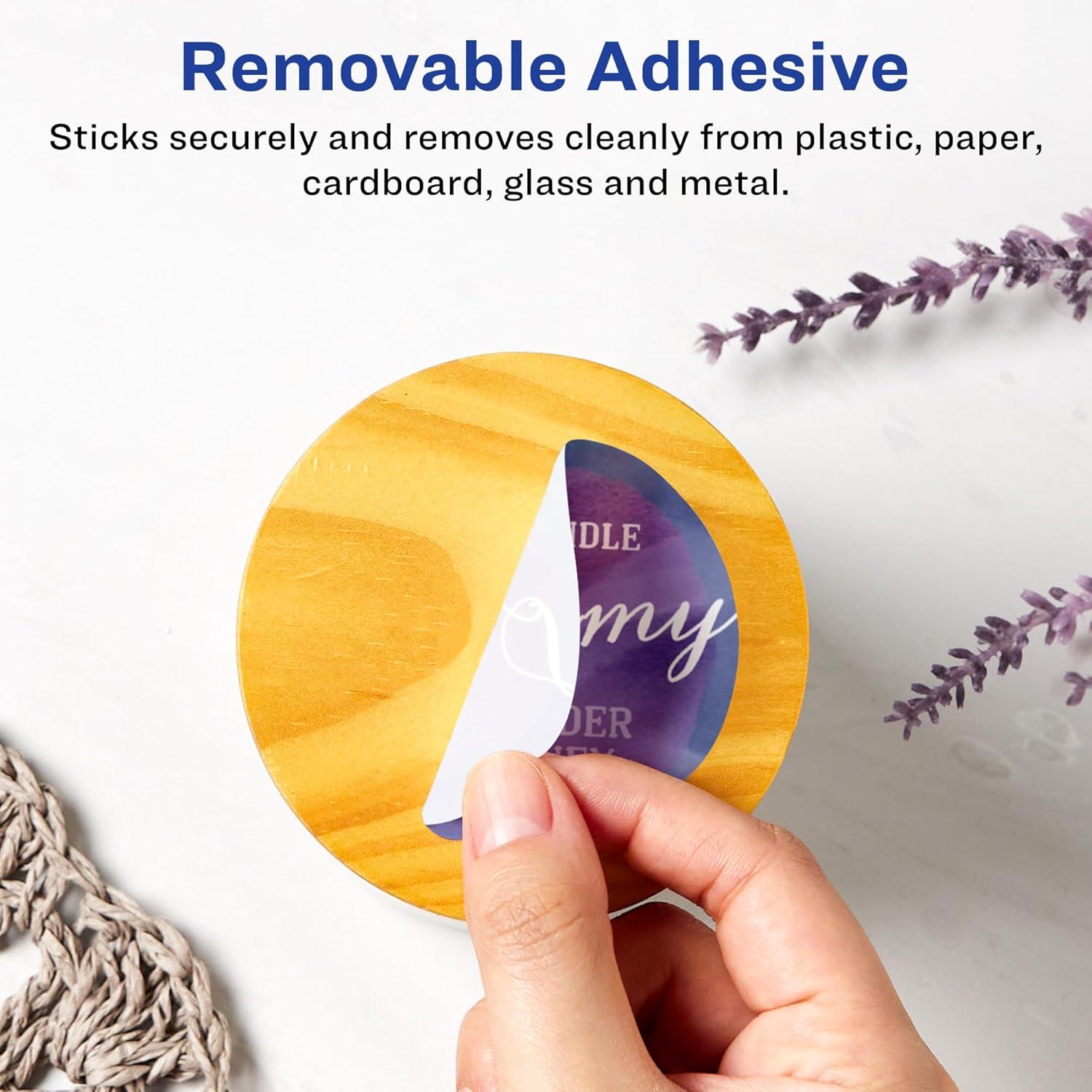 Avery Matte White Removable Round Labels, Sure Feed Technology, Print-to-The-Edge, 3" Diameter, 90 Removable Labels, Laser/Inkjet Printable(90 labels)