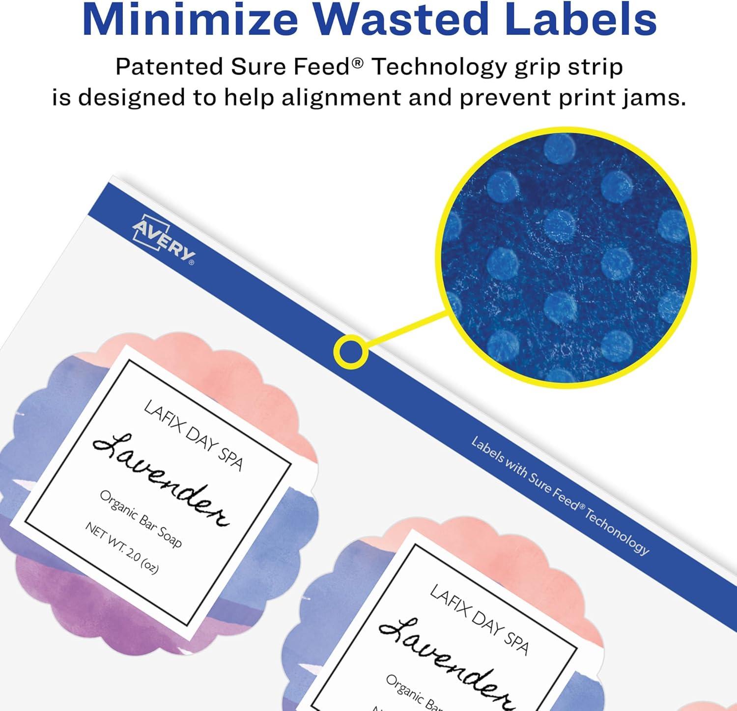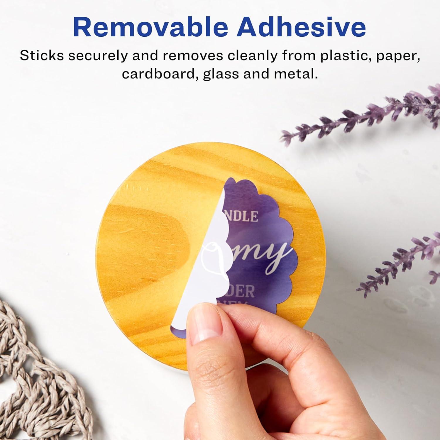 Avery Matte White Removable Round Scalloped Labels, Sure Feed Technology, Print-to-The-Edge, 2.5" Diameter, 135 Removable Labels, Laser/Inkjet Printable(900 labels)