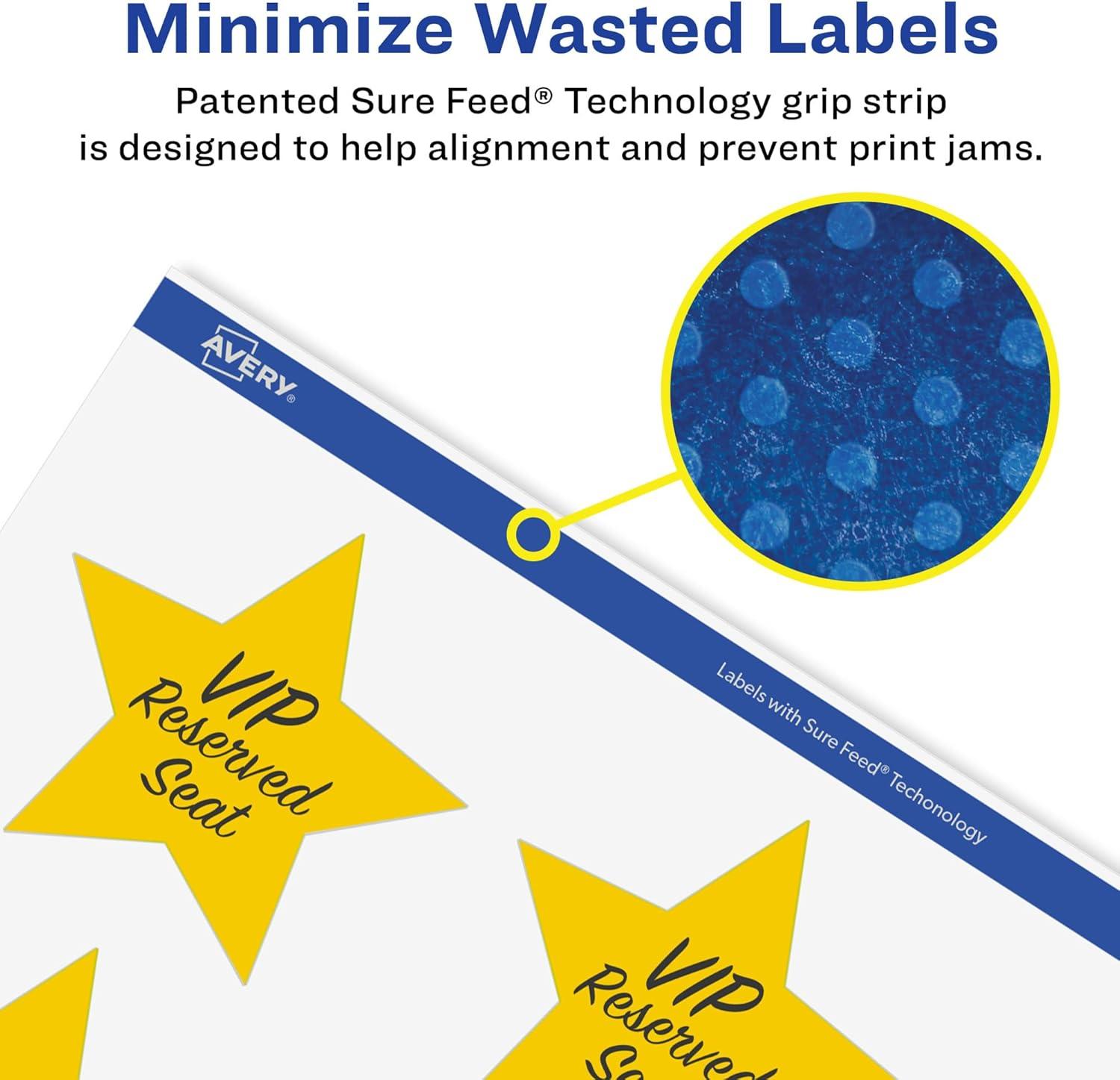 Avery Matte White Removable Star Labels, Sure Feed Technology, Print-to-The-Edge, 0.75" x 0.75", 1,200 Removable Labels, Laser/Inkjet Printable(2 000 labels)