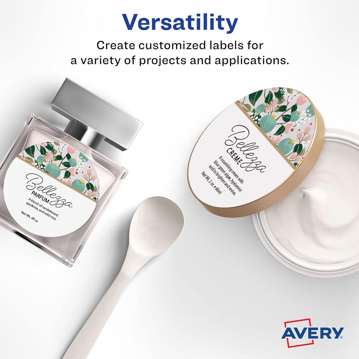 Avery Matte White Round Labels, Sure Feed Technology, 2.5″ Diameter, 225 Matte White Printable Labels(450 Labels)