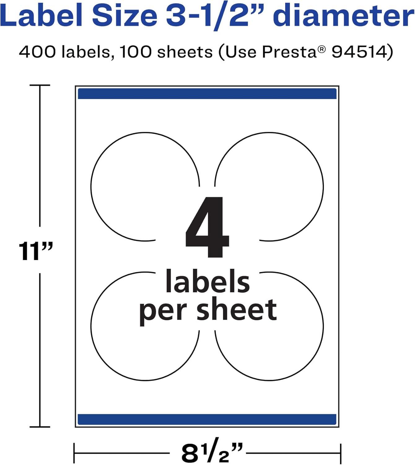 Avery Matte White Round Labels, Sure Feed Technology, 3.5″ Diameter, 100 Matte White Printable Labels(400 Labels)