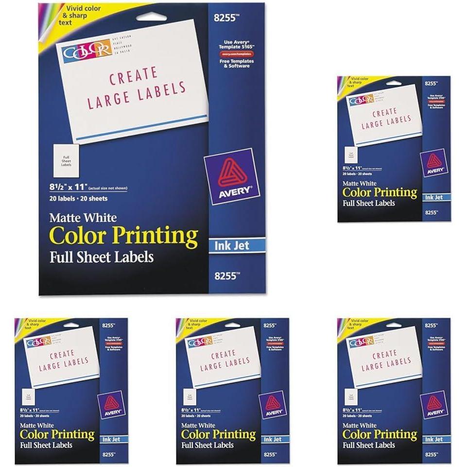 Avery Matte White Shipping Labels, Permanent Adhesive, 8-1/2" x 11", 20 Labels (8255)(One Size (Pack of 5))