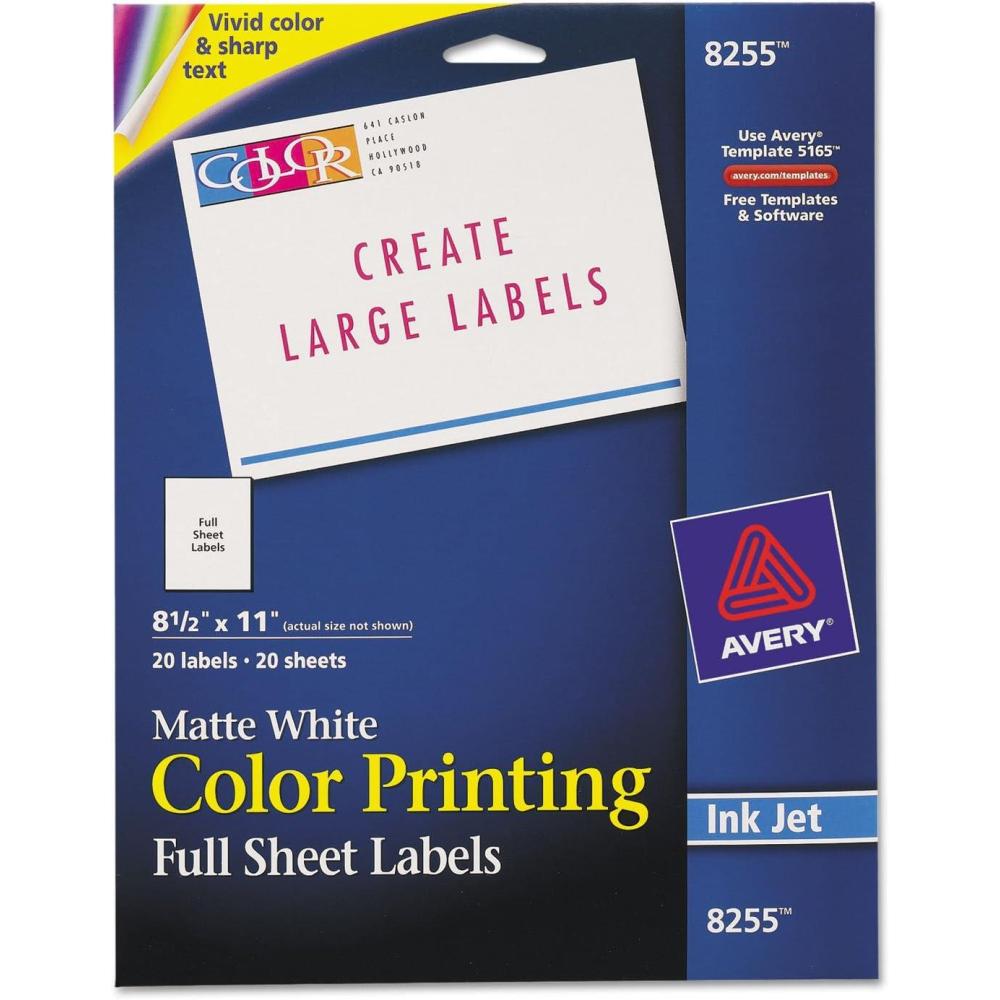 Go beyond the boundaries of shape and size with these Matte White Full-Sheet Labels. Design the labels of your dreams with graphics and sharp text. Want fast, convenient mailings that really stand out? Fill each label with as much or as little detail as you can envision. Free templates from avery.com take care of the formatting, so creating a mailing label masterpiece is easy. Names, addresses, photos, logos and more-put them in and print them out with any inkjet printer. How's that for labeling without limits?