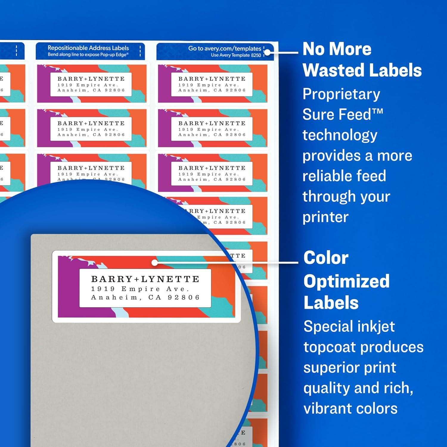Avery 8254 Labels feature patented Sure Feed(R) Technology grip strip designed to help alignment and reduce printer jams.
