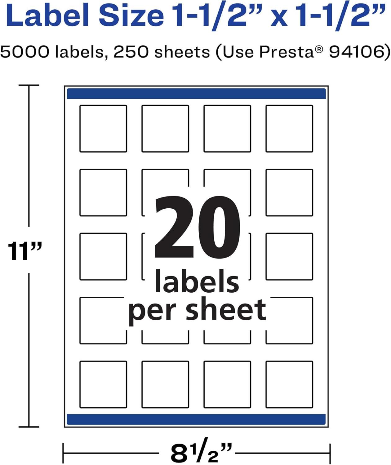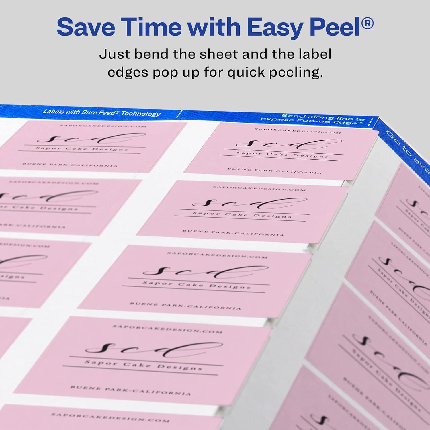 Matte white Avery labels are the perfect choice for any project. The smooth, matte white finish is a great fit whether you're designing product labels, shipping packages for work, making party favors or adding a creative touch to personal crafts or school projects. Each sheet of labels features Sure Feed technology which helps deliver a more reliable feed through your printer to prevent print misalignments and paper jams. The print-to-the-edge feature makes it easy to print beautiful designs that can reach the edges of the label without a border or outline. Quickly apply these labels with our patented Easy Peel label sheets with Pop-up Edge. Simply fold the sheet back to display the label edges for convenient and fast peeling. A strong permanent adhesive is used to ensure that these labels stick and stay to paper, cardboard, plastic, glass, metal and more without curling or falling off. The versatile label shape can adapt to almost any use, just create your design with our free software and print. Avery Design & Print makes it easy to create customized labels from your own home or business so that you can print professional designs with your laser or inkjet printer. Our free browser-based software includes predesigned templates as well as tools for editing text and images so that you can create barcode labels, lip balm labels, party favor labels, spray bottle labels, container labels, skin care labels and more. Try it out today by searching for Avery template Presta 94106 on the Avery site.