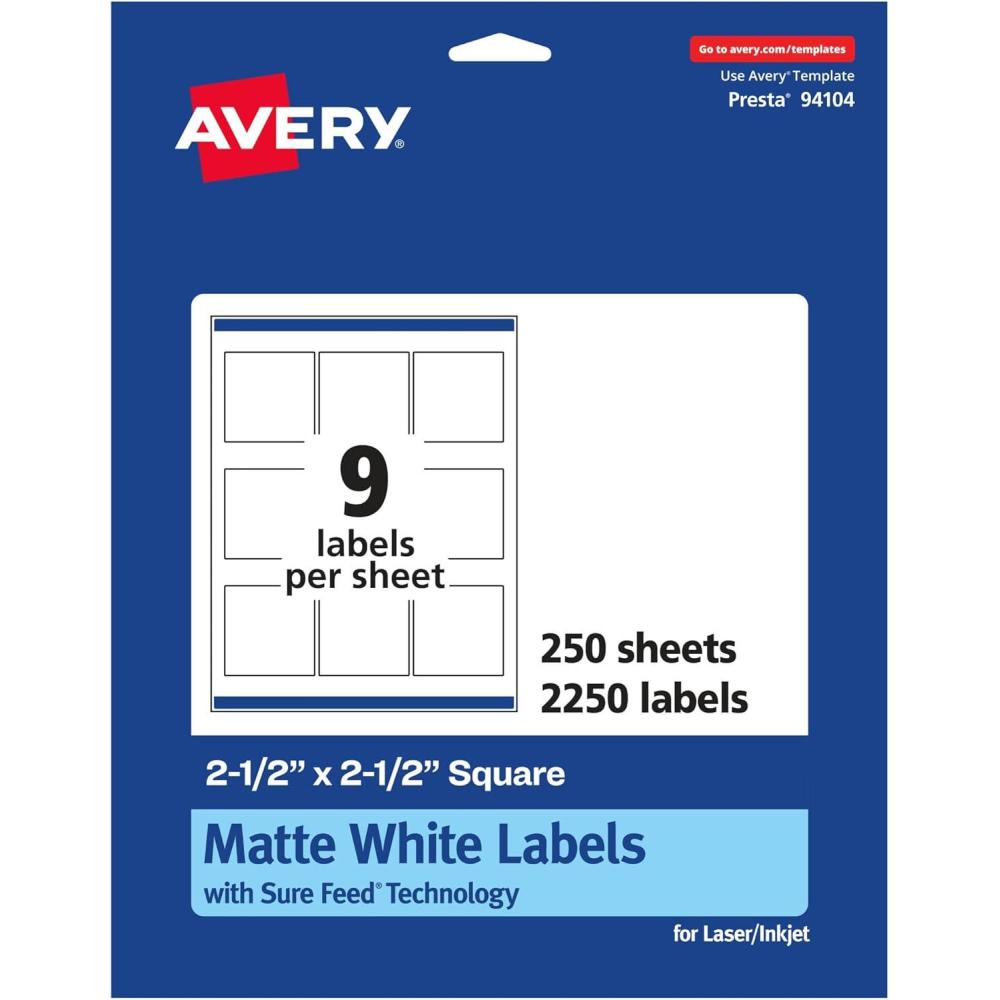 Matte white Avery labels are the perfect choice for any project. The smooth, matte white finish is a great fit whether you're designing product labels, shipping packages for work, making party favors or adding a creative touch to personal crafts or school projects. Each sheet of labels features Sure Feed technology which helps deliver a more reliable feed through your printer to prevent print misalignments and paper jams. A strong permanent adhesive is used to ensure that these labels stick and stay to paper, cardboard, plastic, glass, metal and more without curling or falling off. The versatile label shape can adapt to almost any use, just create your design with our free software and print. Avery Design & Print makes it easy to create customized labels from your own home or business so that you can print professional designs with your laser or inkjet printer. Our free browser-based software includes predesigned templates as well as tools for editing text and images so that you can create ingredient labels, food labels, candle labels, product labels and more. Try it out today by searching for Avery template Presta 94104 on the Avery site.