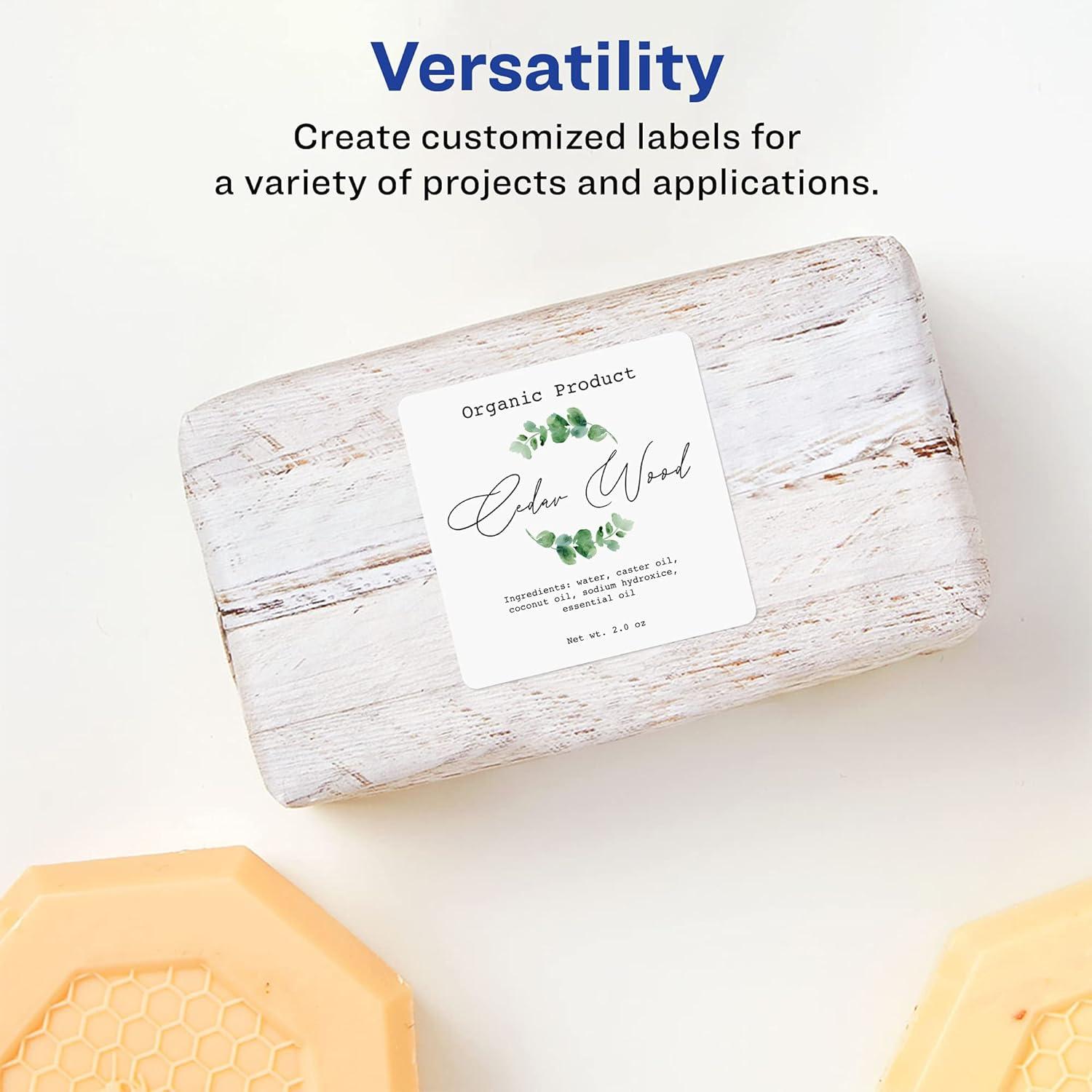 Avery Matte White Square Labels, Sure Feed Technology, 2.5″ x 2.5″, 225 Matte White Printable Labels(225 Labels)