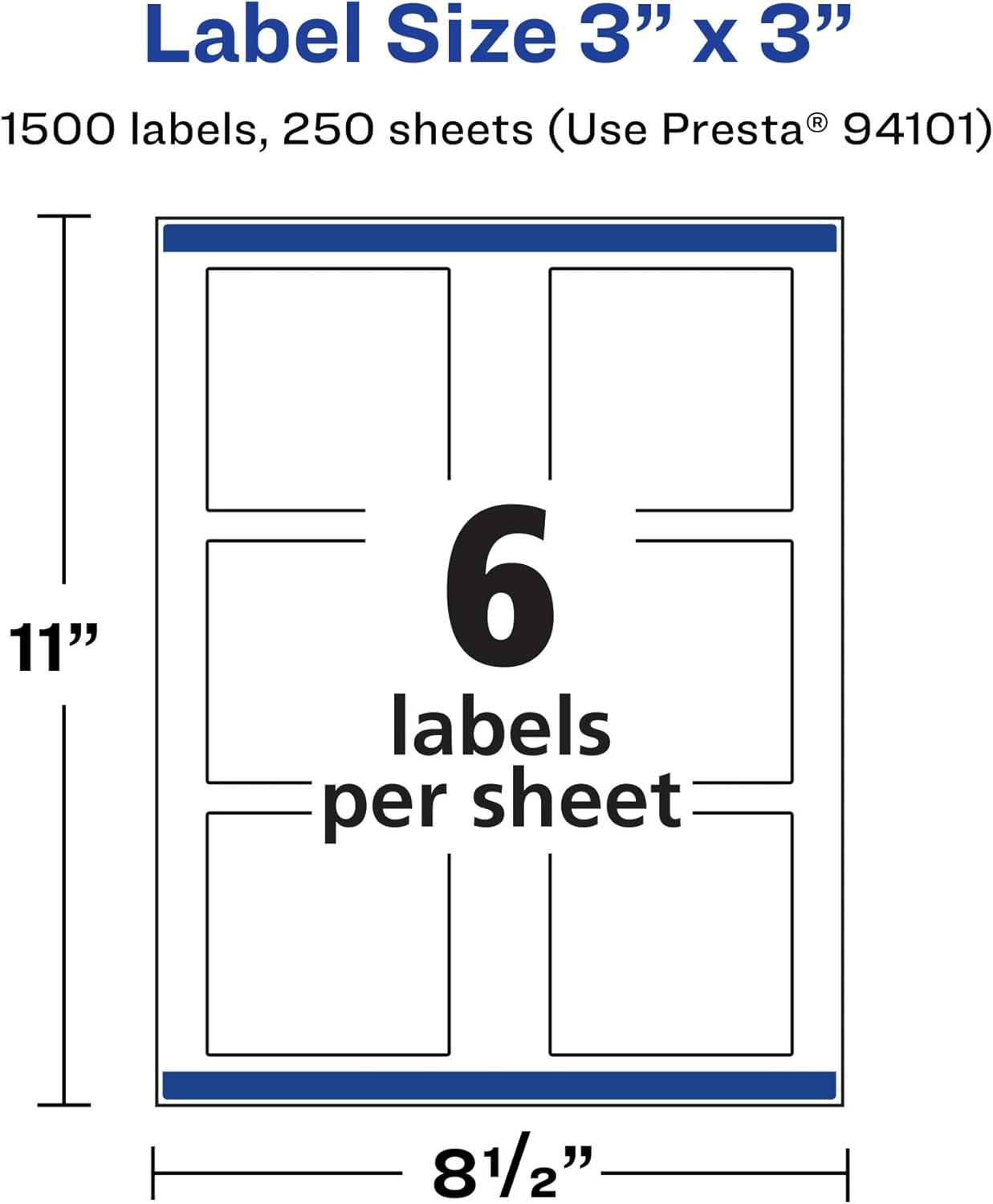 Avery Matte White Square Labels, Sure Feed Technology, 3″ x 3″, 150 Matte White Printable Labels(1 500 Labels)
