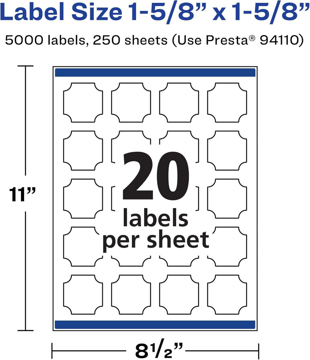 Matte white Avery labels are the perfect choice for any project. The smooth, matte white finish is a great fit whether you're designing product labels, shipping packages for work, making party favors or adding a creative touch to personal crafts or school projects. Each sheet of labels features Sure Feed technology which helps deliver a more reliable feed through your printer to prevent print misalignments and paper jams. The print-to-the-edge feature makes it easy to print beautiful designs that can reach the edges of the label without a border or outline. A strong permanent adhesive is used to ensure that these labels stick and stay to paper, cardboard, plastic, glass, metal and more without curling or falling off. The versatile label shape can adapt to almost any use, just create your design with our free software and print. Avery Design & Print makes it easy to create customized labels from your own home or business so that you can print professional designs with your laser or inkjet printer. Our free browser-based software includes predesigned templates as well as tools for editing text and images so that you can create candle labels, soap labels, thank you labels and more. Try it out today by searching for Avery template Presta 94110 on the Avery site.