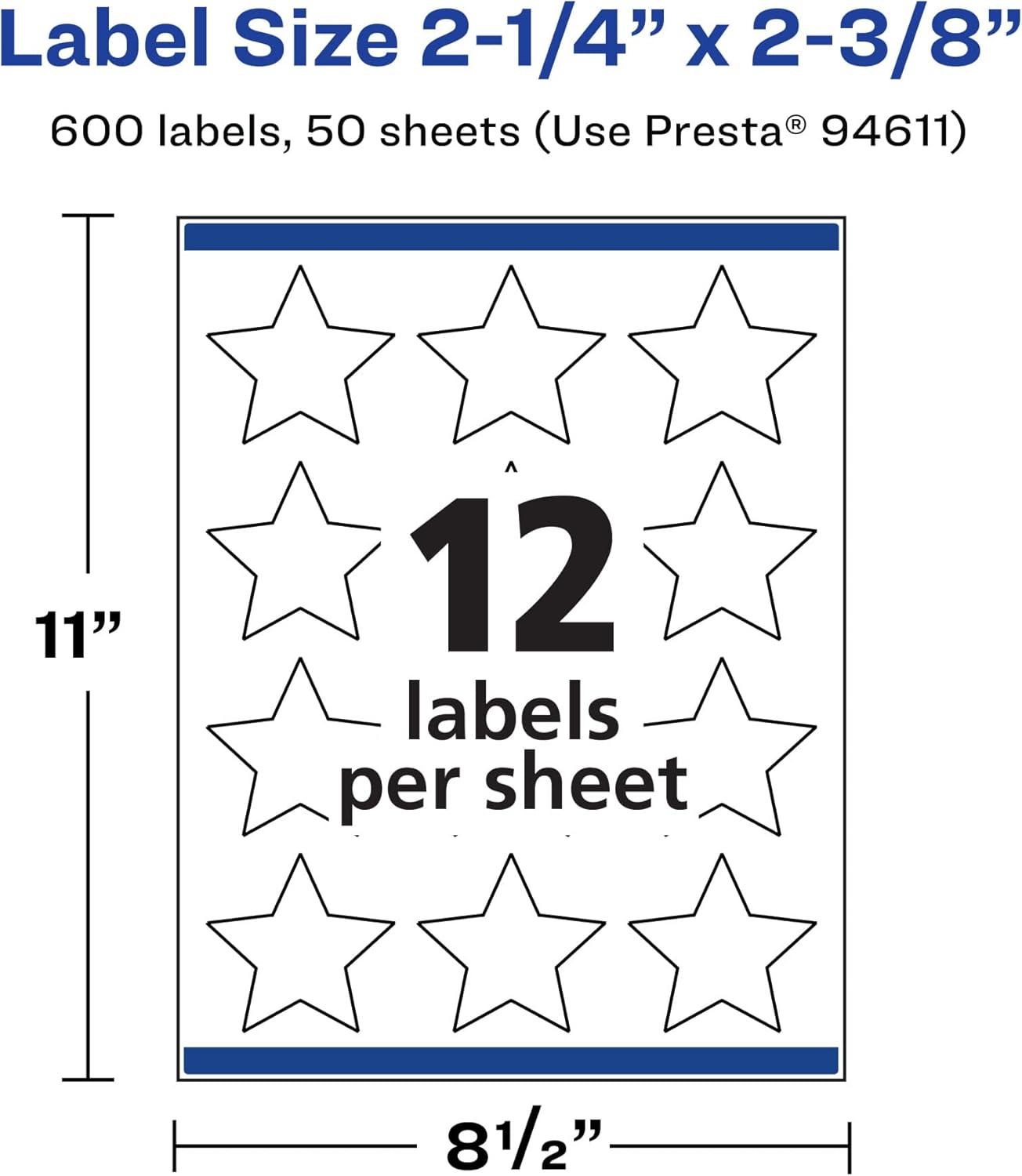Avery Matte White Star Labels, Sure Feed Technology, 2-1/4″ x 2-3/8″, 300 Matte White Printable Labels(600 labels)