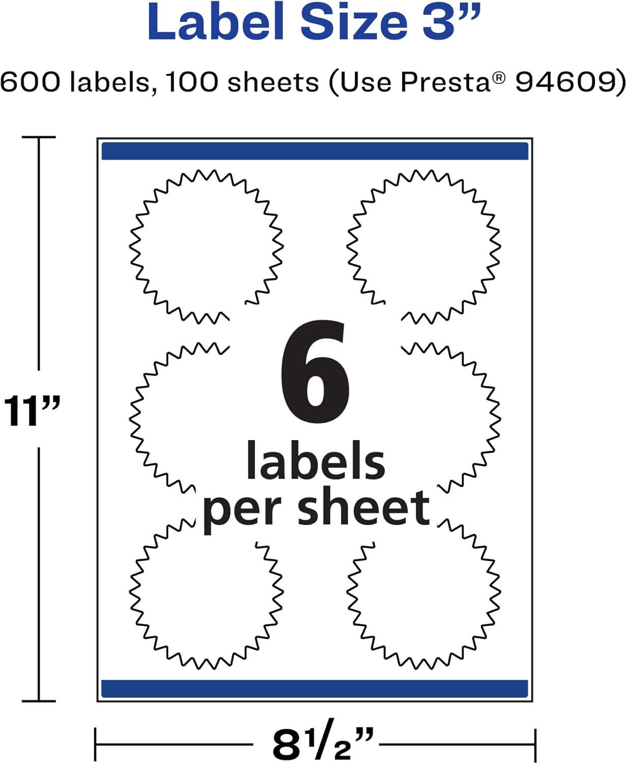 Avery Matte White Starburst Labels, Sure Feed Technology, 3″, 1,500 Matte White Printable Labels(600 Labels)