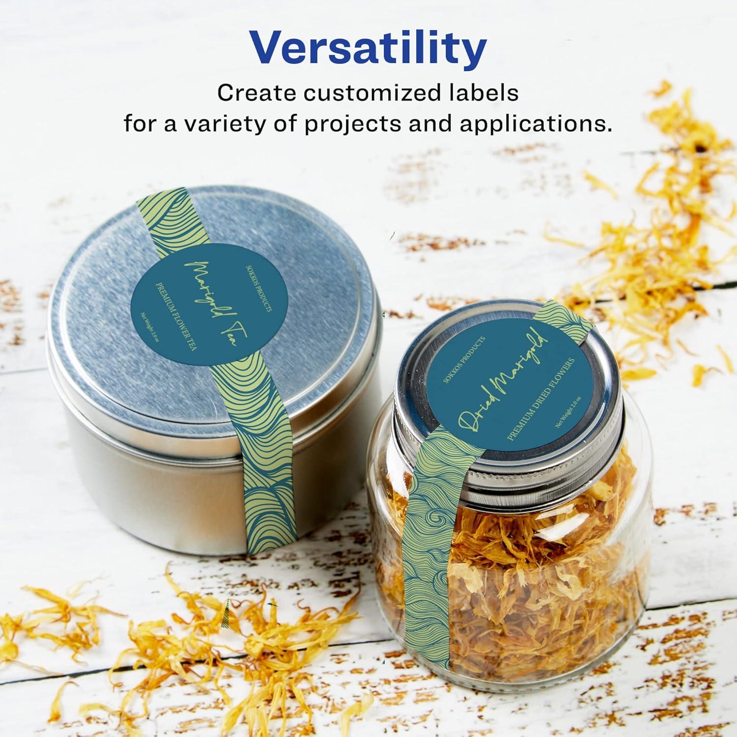Customize your own unique soap labels, cosmetic product labels, jar labels, product seals, bottle labels and more with Avery 1-1/2″ x 7-3/4″ Matte White Wraparound Band Labels. Avery wraparound band labels are carefully constructed with patented features to provide the best results. Sure Feed technology prevents jams or smudges by creating a more reliable feed through your printer. The print-to-the-edge layout lets you print beautiful full-bleed designs that fill each blank sticker to the edge. These white cigar labels are compatible with both laser and inkjet printers so that you can effortlessly print bold, bright colors and clear, sharp text. The sturdy permanent label adhesive makes sure that your labels stick and stay to a variety of surfaces without peeling, curling or falling off. Easily customize labels with your own designs, art, symbols and messaging by using the free label templates and designs in Avery Design & Print.