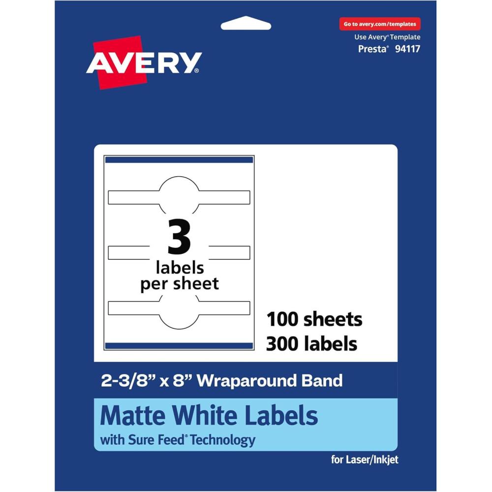 Customize your own unique soap labels, cosmetic product labels, jar labels, product seals, bottle labels and more with Avery 2-3/8″ x 8″ Matte White Wraparound Band Labels. Avery wraparound band labels are carefully constructed with patented features to provide the best results. Sure Feed technology prevents jams or smudges by creating a more reliable feed through your printer.These white cigar labels are compatible with both laser and inkjet printers so that you can effortlessly print bold, bright colors and clear, sharp text. The sturdy permanent label adhesive makes sure that your labels stick and stay to a variety of surfaces without peeling, curling or falling off. Easily customize labels with your own designs, art, symbols and messaging by using the free label templates and designs in Avery Design & Print.