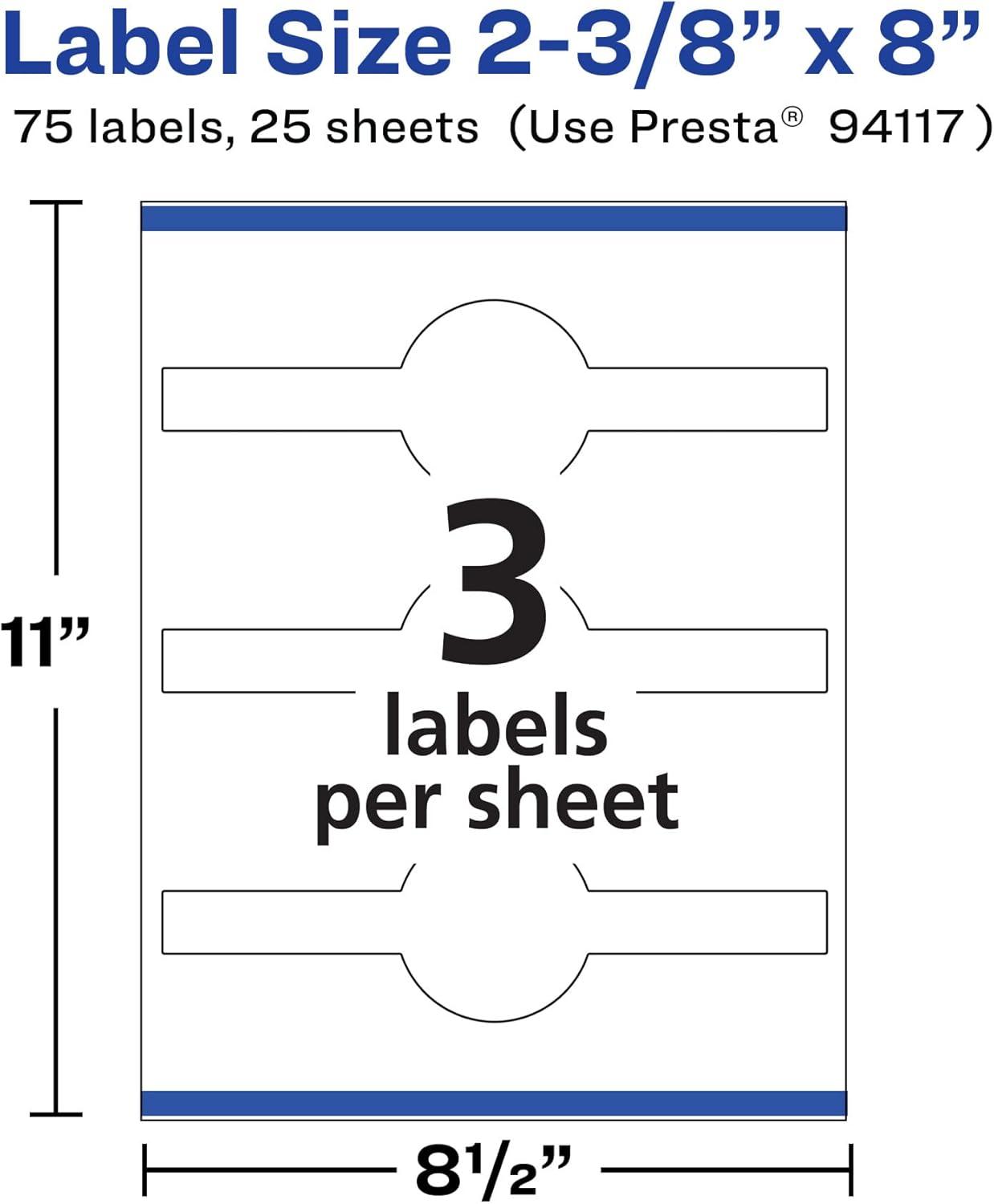 Avery Matte White Wraparound Band Labels, Sure Feed Technology, 2-3/8" x 8", Cigar Band Labels, Permanent Adhesive, Laser/Inkjet Printable, 75 Total(75 labels)