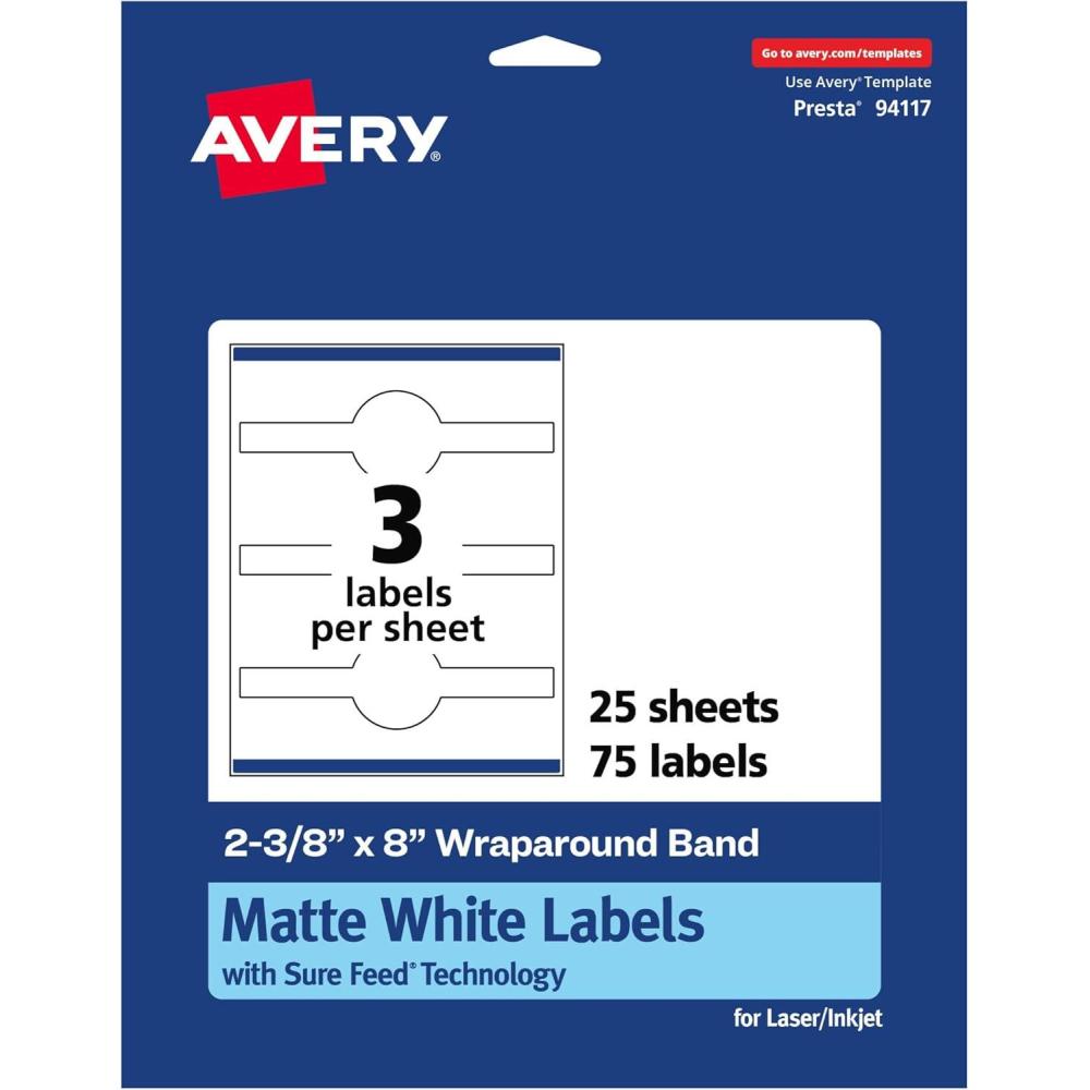 Avery Matte White Wraparound Band Labels, Sure Feed Technology, 2-3/8″ x 8″, Cigar Band Labels, Permanent Adhesive, Laser/Inkjet Printable, 75 Total(75 labels)