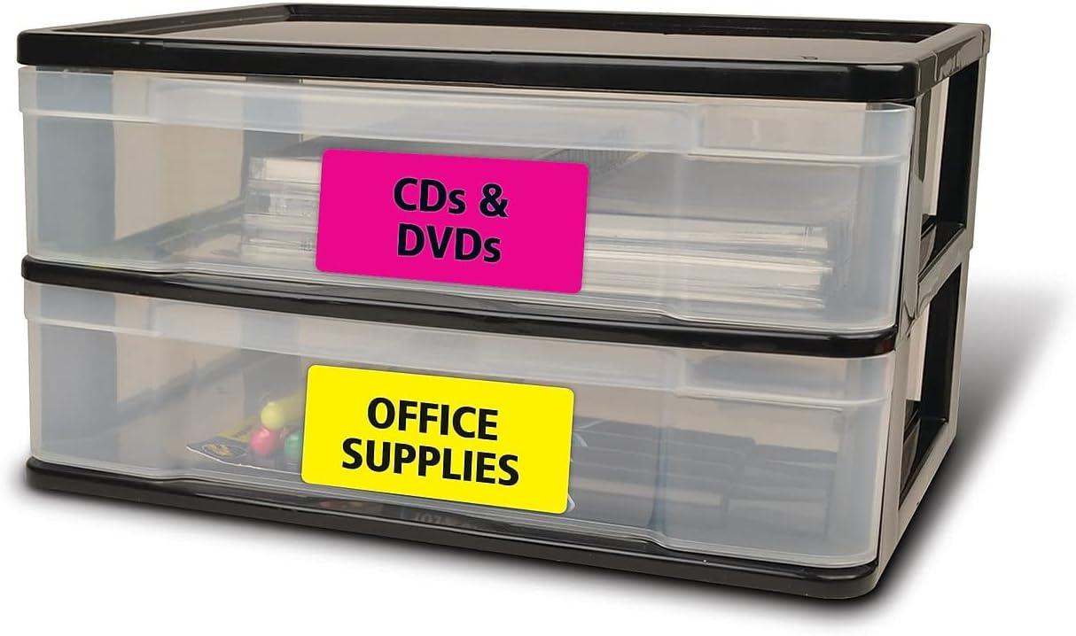 Now you can take your color coding and organization to a whole new level with our Removable Neon Labels that help you find what you need in a flash. These labels stick, stay put and remove cleanly once the job is done, so updating information is a breeze. They adhere to almost any smooth surface including paper, cardboard, plastic, wood, glass and metal. And no more rubbing or scraping to remove the old label, so they're perfect for projects with ever-changing needs. Create your own unique labels with our software and pre-designed templates on the Avery site. Along with your organization needs, you can also customize them for gifts, packages, proposals and more. These removable labels are definitely a bright idea.