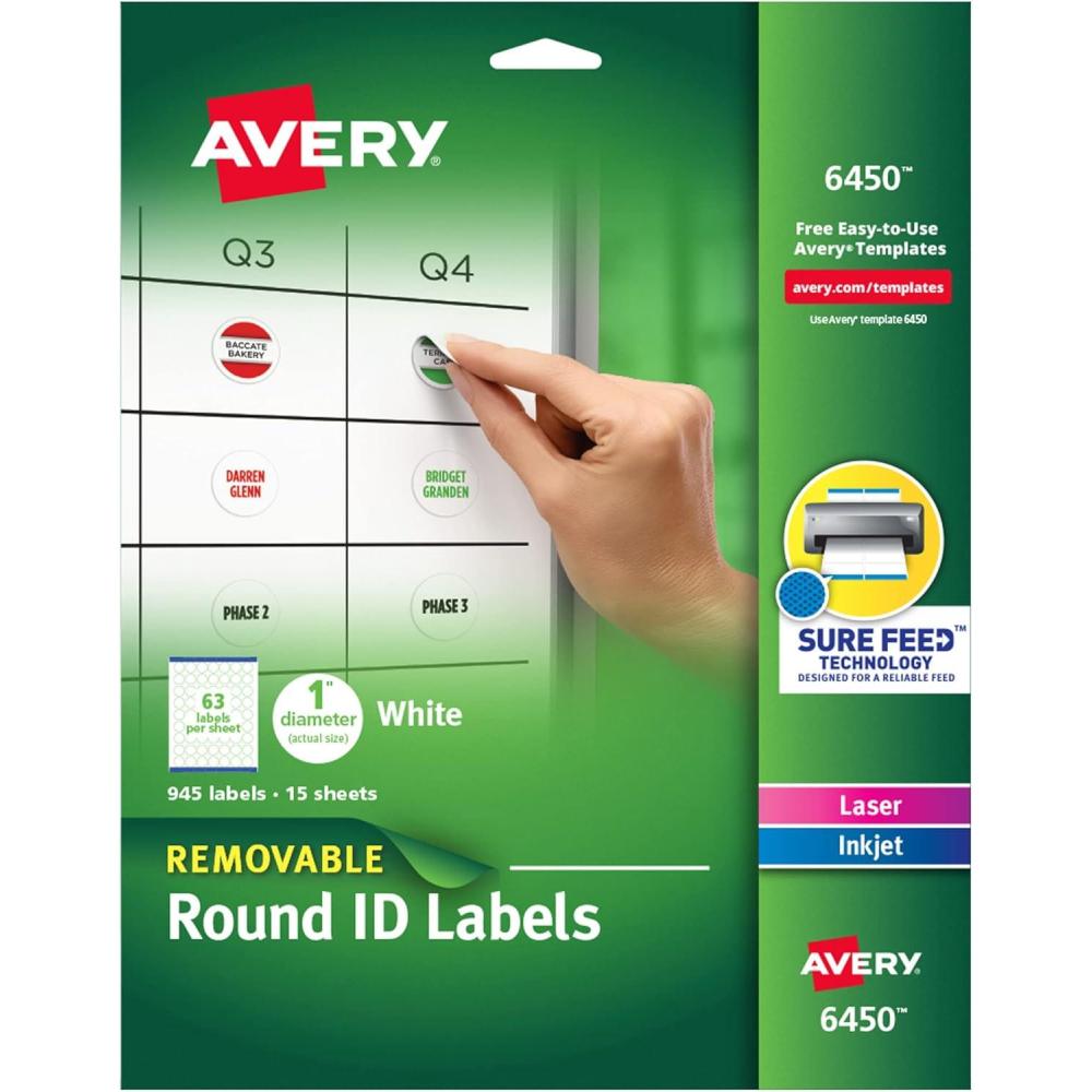 Why toss a label after a single use when you can reuse it? Organize any project while minimizing label waste with the Avery Round Labels with Sure Feed. The attractive white matte finish helps you create eye-catching white circle stickers needed for any project. The white removable labels can easily detach and reapply to another smooth surface with its removable adhesive. The ID labels can stick, stay, and remove without leaving any residue. Ensure the printable labels receive a clean printing job without any jams or misalignments using Avery Sure Feed technology. Easily create and customize the matte white labels by using the free designs and templates on the Avery site. The multipurpose labels are ideal for envelope labels, drawer labels, calendar labels, craft labels, and lid labels. The 1 inch round labels are compatible with inkjet and laser printers. The pack includes 945 round printer labels.