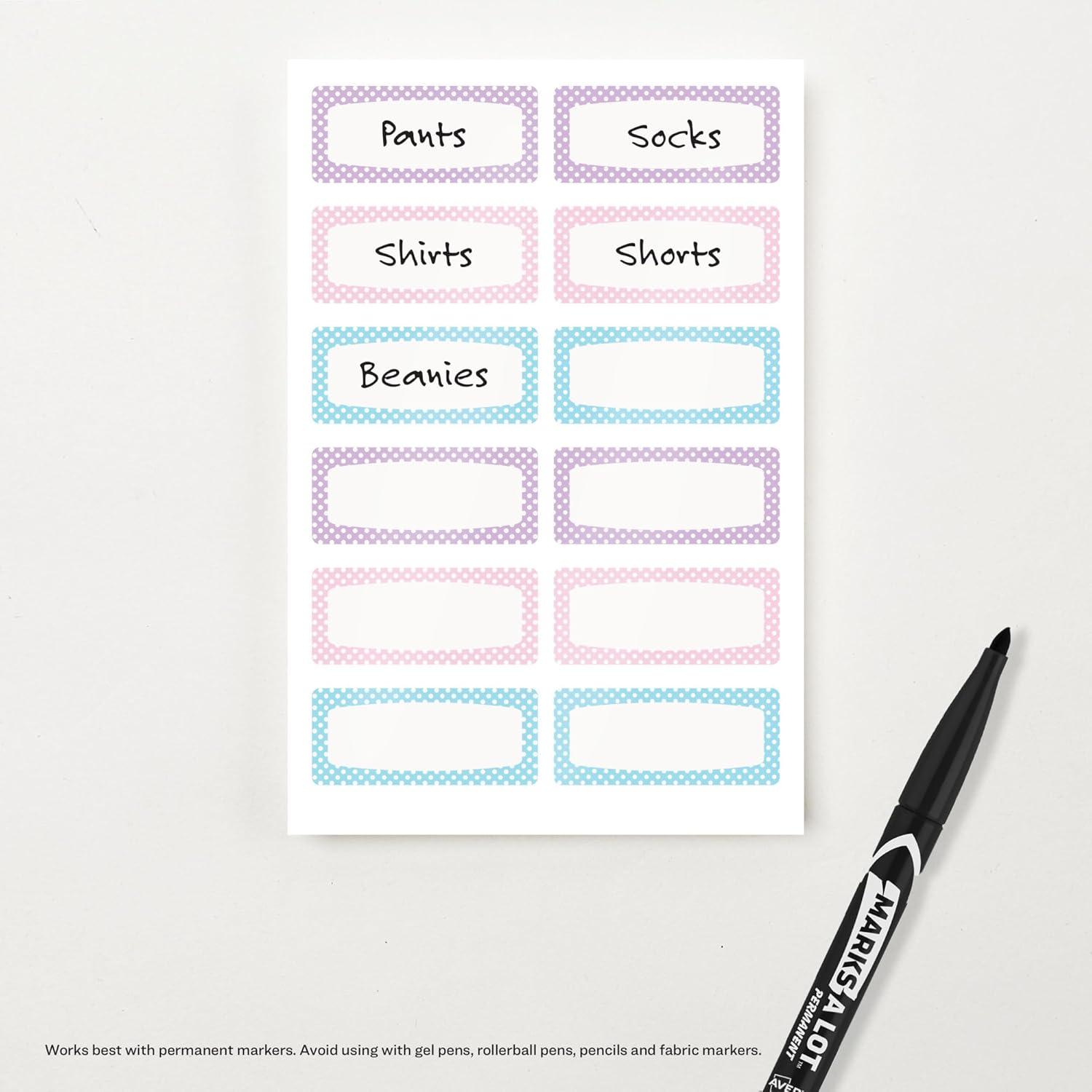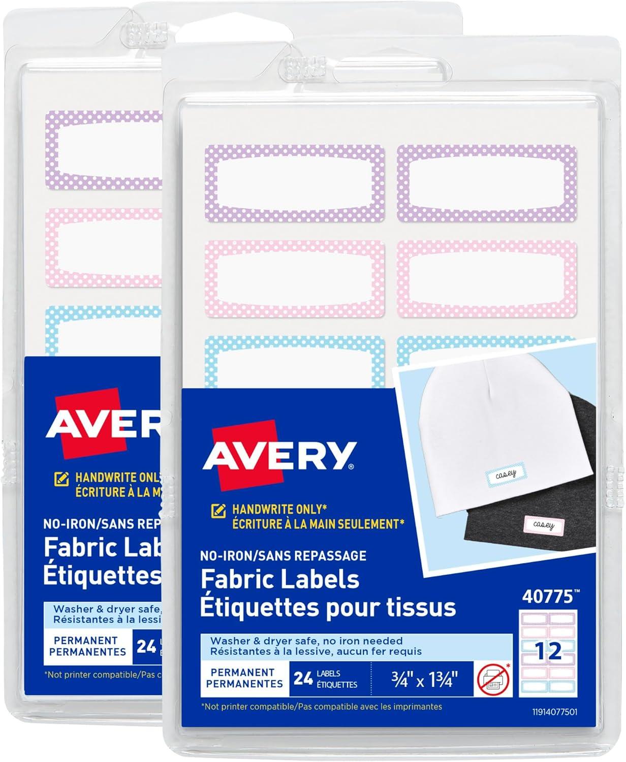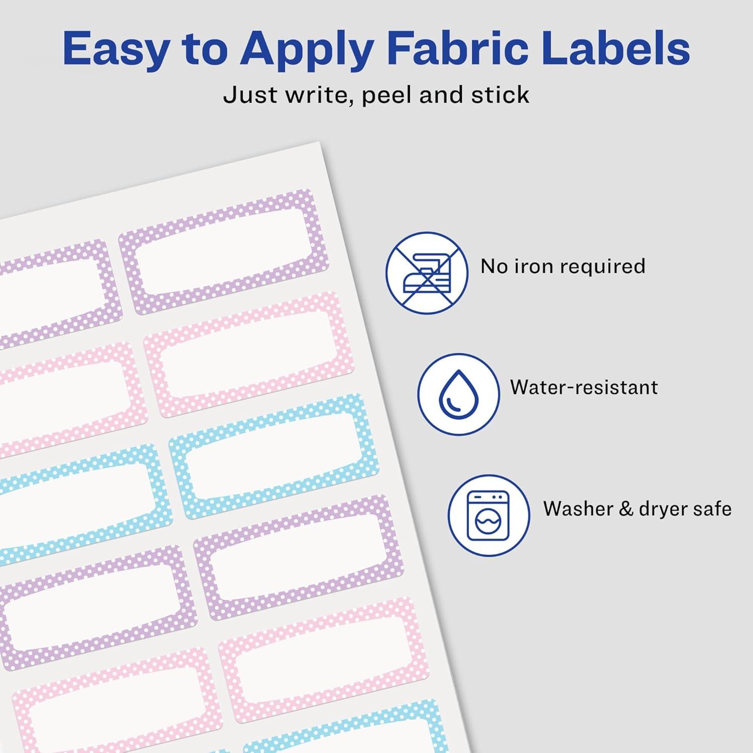 Avery No-Iron Fabric Labels, 1/2" x 1-3/4", Washer and Dryer-Safe Waterproof Labels, Non-Printable, 54 Total (40720)(Pastel Designs)