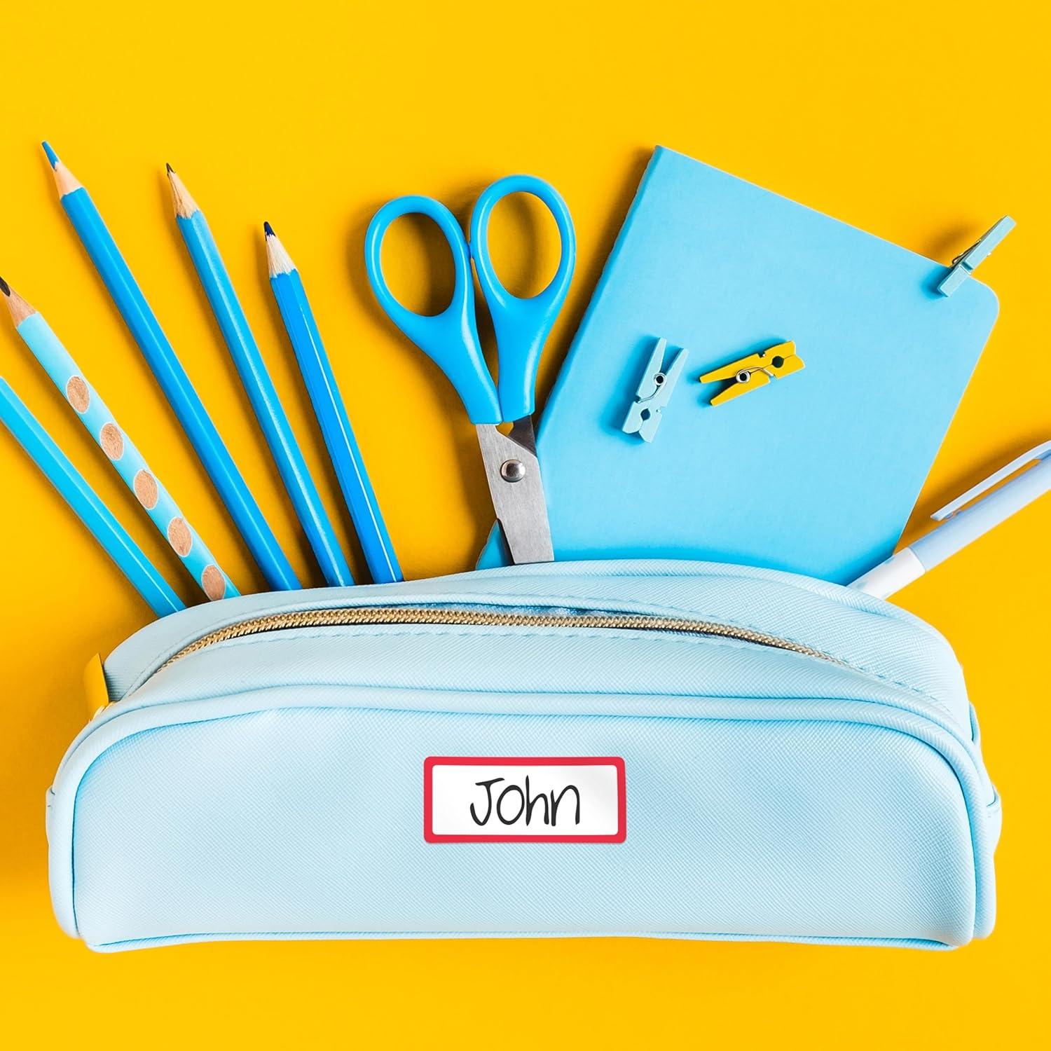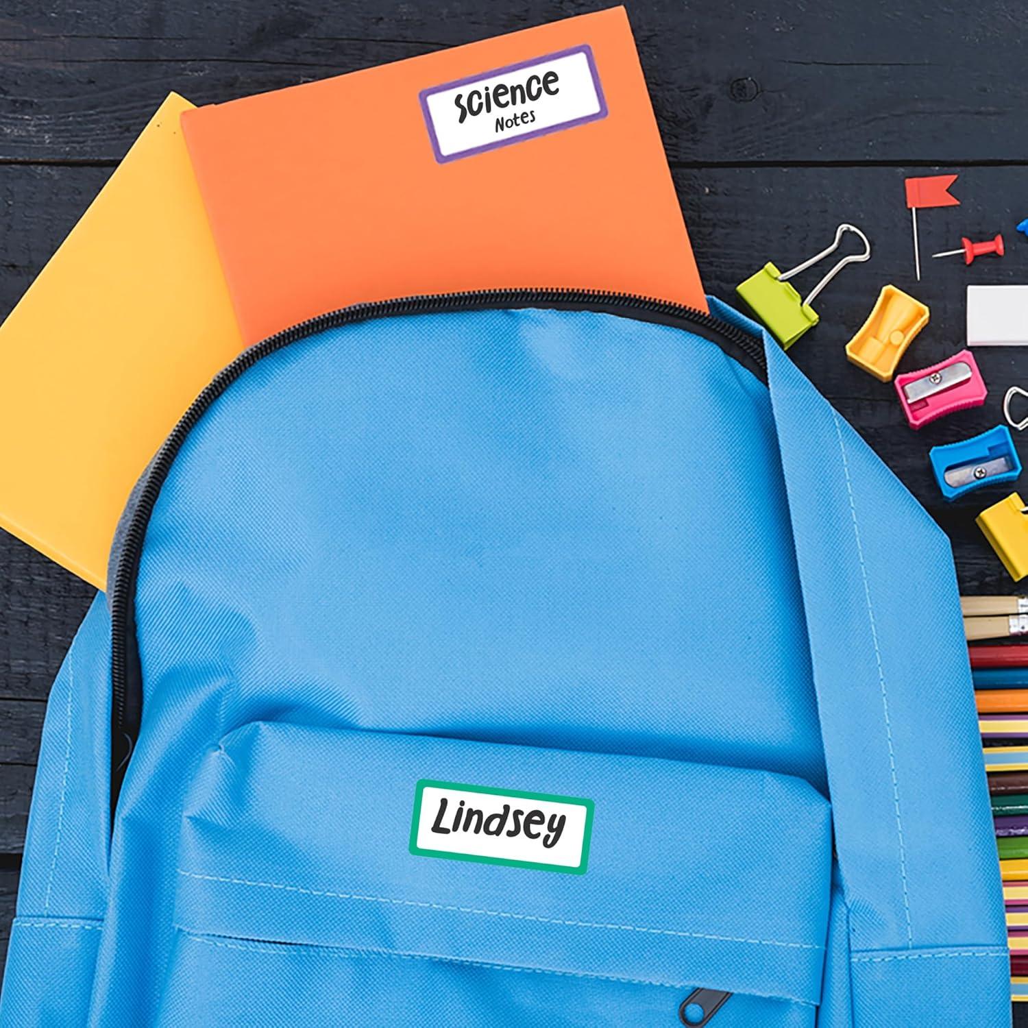 Label stickers are backed with a permanent adhesive that can be applied to a wide range of smooth surfaces, including fabric, water bottles, luggage, school supplies, and more with no iron required