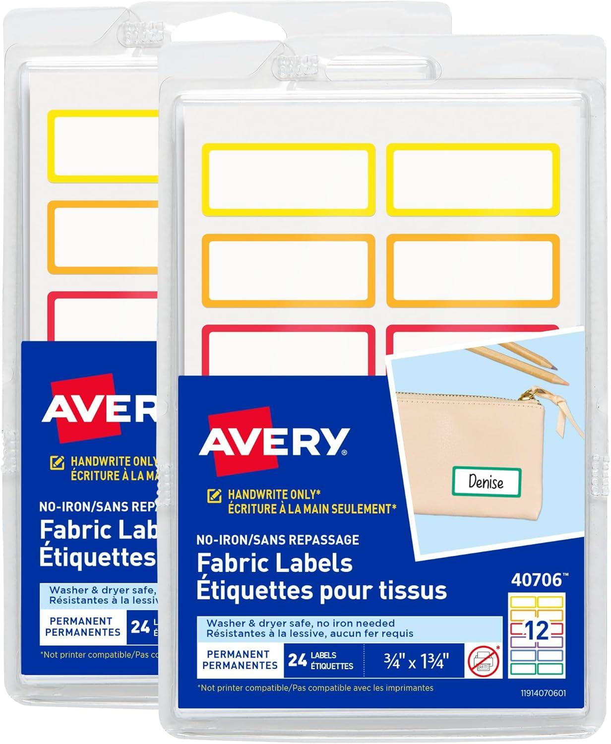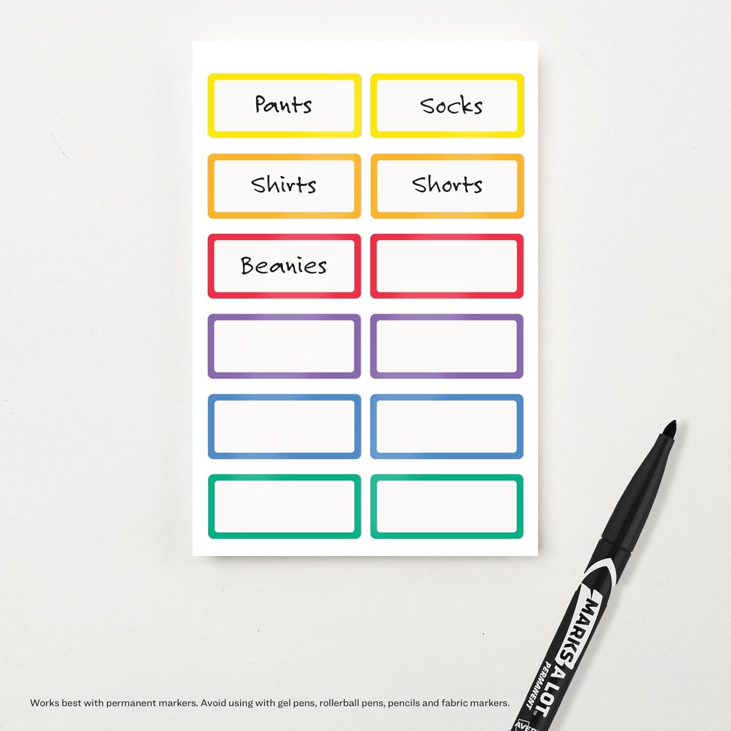 Avery No-Iron Fabric Labels, 1/2" x 1-3/4", Washer and Dryer-Safe Waterproof Labels, Non-Printable, 54 Total (40720)(Rainbow Borders Designs)
