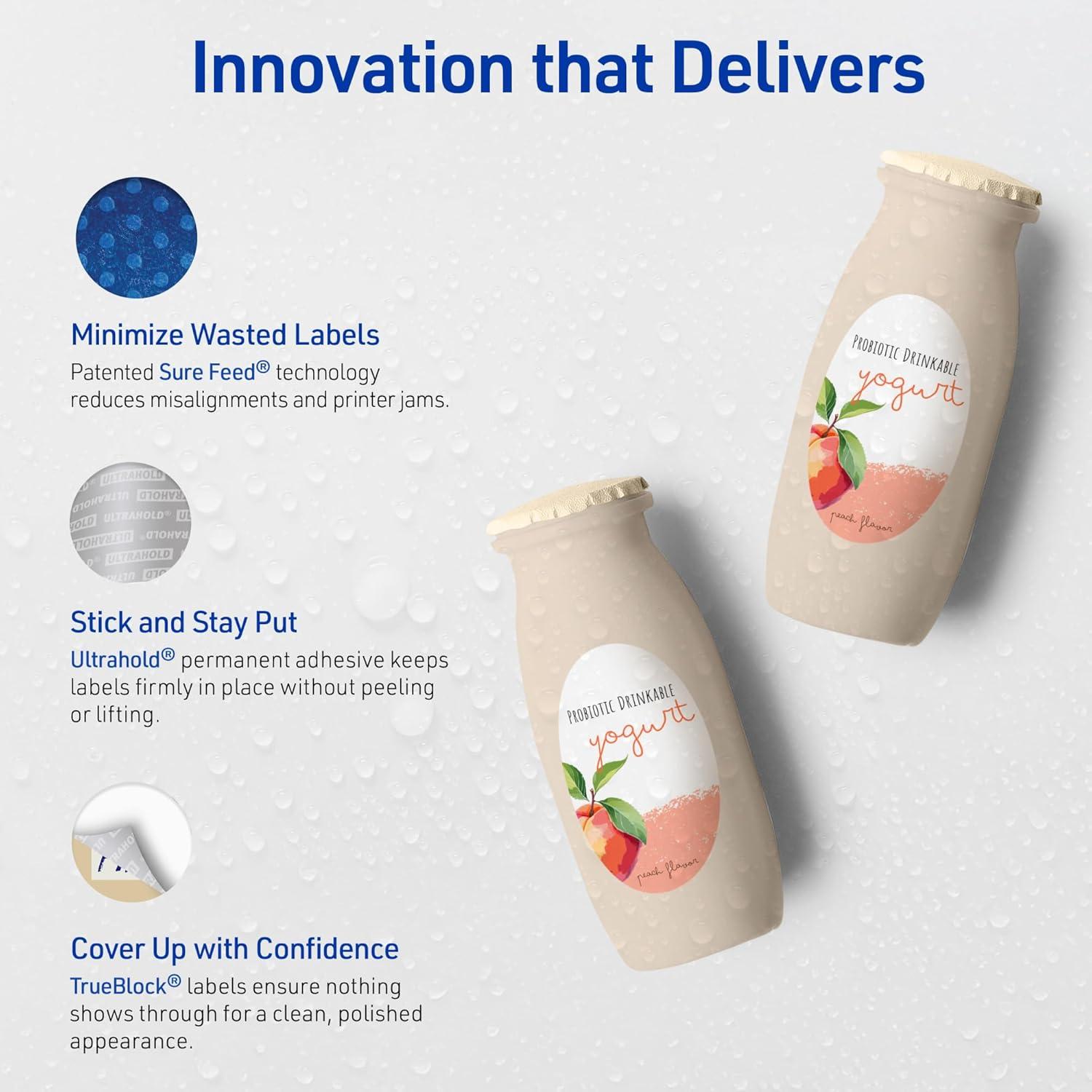 imageAvery Outdoor Waterproof Oval Labels with Sure Feed Technology 15quot x 25quot White Film Compatible with Laser Printers 450 Labels Total Great for Product Branding Packaging and More900 labels
