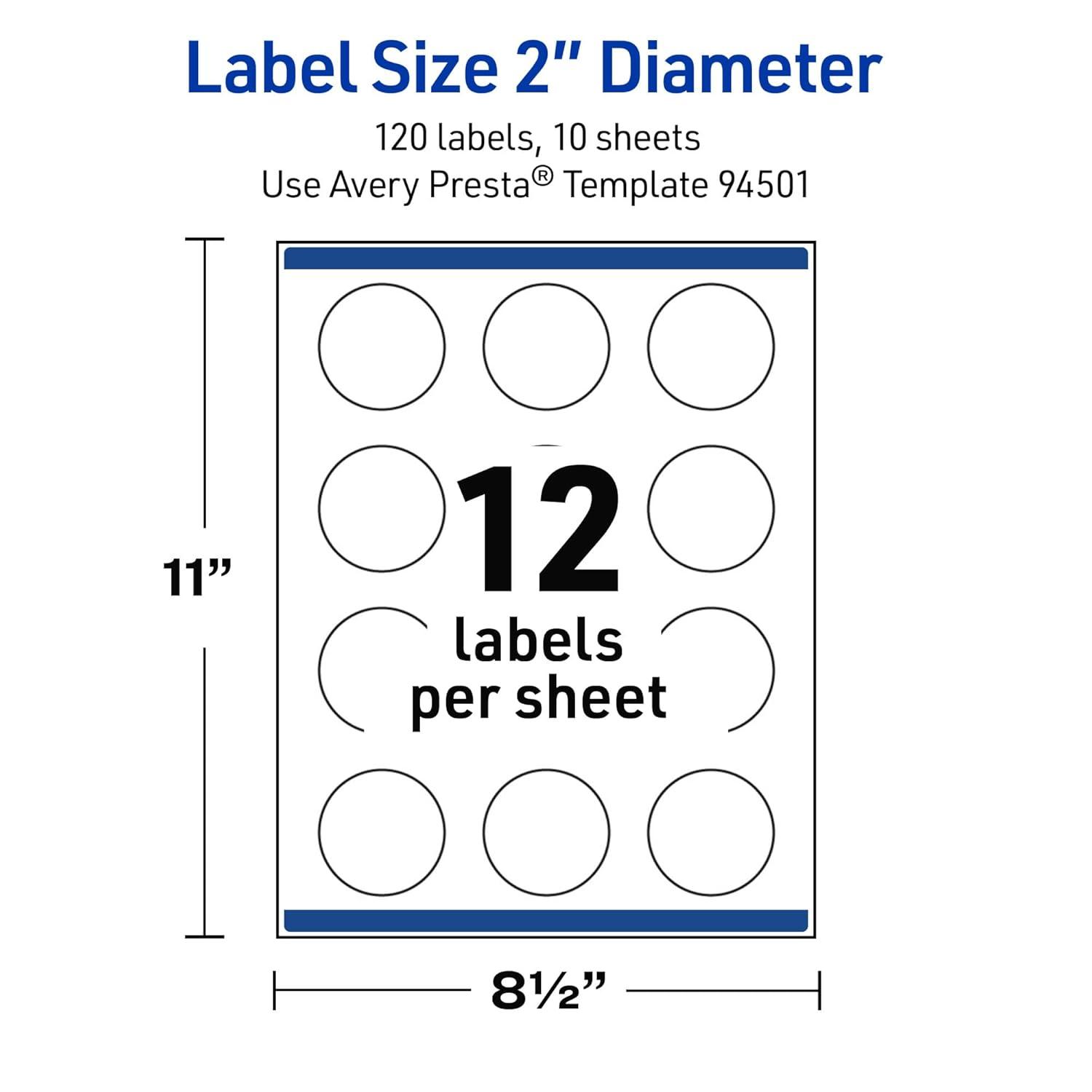 Avery Outdoor Waterproof Round Labels with Sure Feed Technology, 2″ Diameter, White Film, Print-to-The-Edge, Compatible with Laser Printers, 120 Labels Total(120 labels)