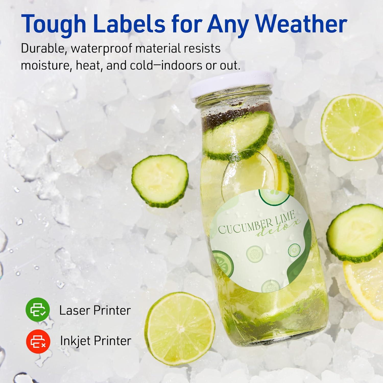Ensure lasting quality: These durable Avery labels resist tearing, UV, hot and cold temperatures, chemicals, and oils so your waterproof stickers remain intact and readable indoors and outdoors