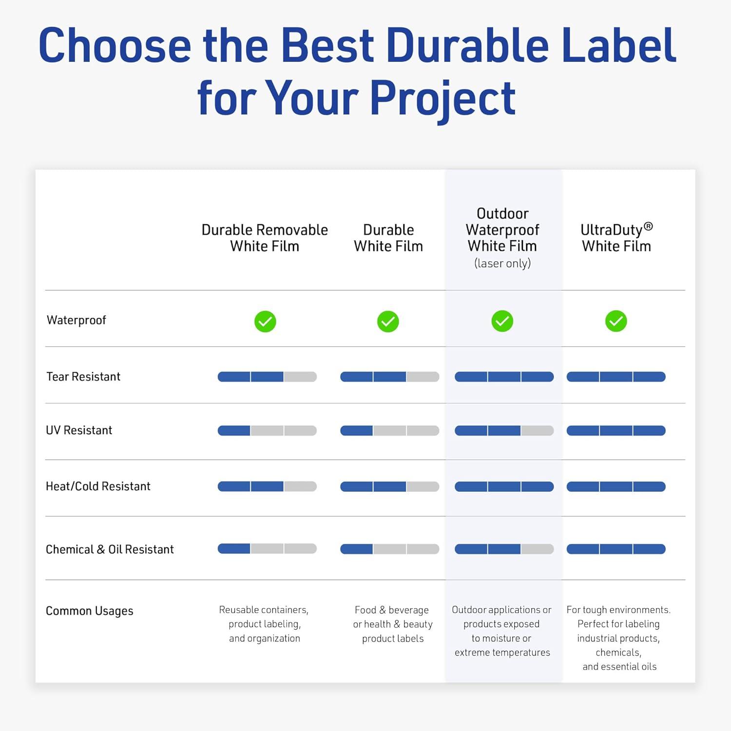 Ensure lasting quality: These durable Avery labels resist tearing, UV, hot and cold temperatures, chemicals, and oils so your waterproof stickers remain intact and readable indoors and outdoors