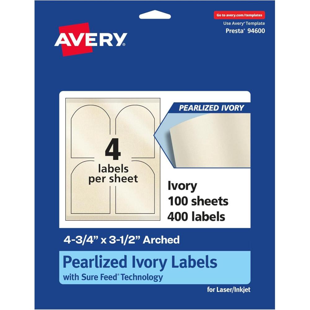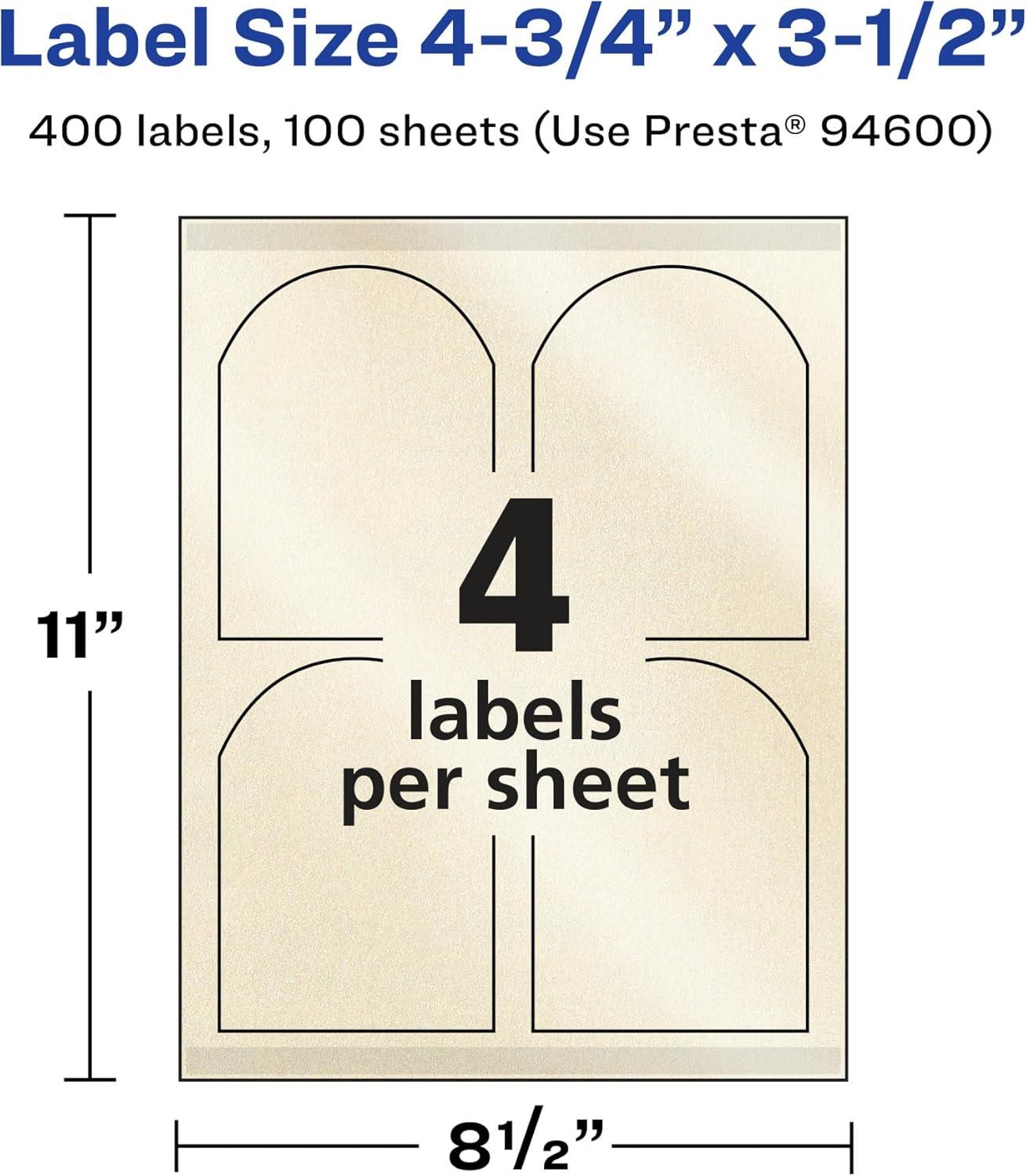 Avery Pearlized Ivory Arched Labels, Sure Feed Technology, Print-to-The-Edge, 4.75″ x 3.5″, 40 Pearlized Ivory Labels, Laser/Inkjet Printable(400 labels)