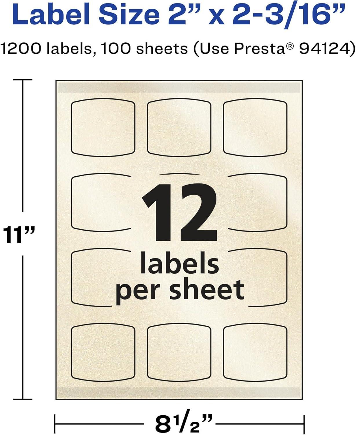 Avery Pearlized Ivory Arched Square Labels, Sure Feed Technology, Print-to-The-Edge, 2″ x 2-3/16″, 120 Pearlized Ivory Labels, Laser/Inkjet Printable(1 200 labels)