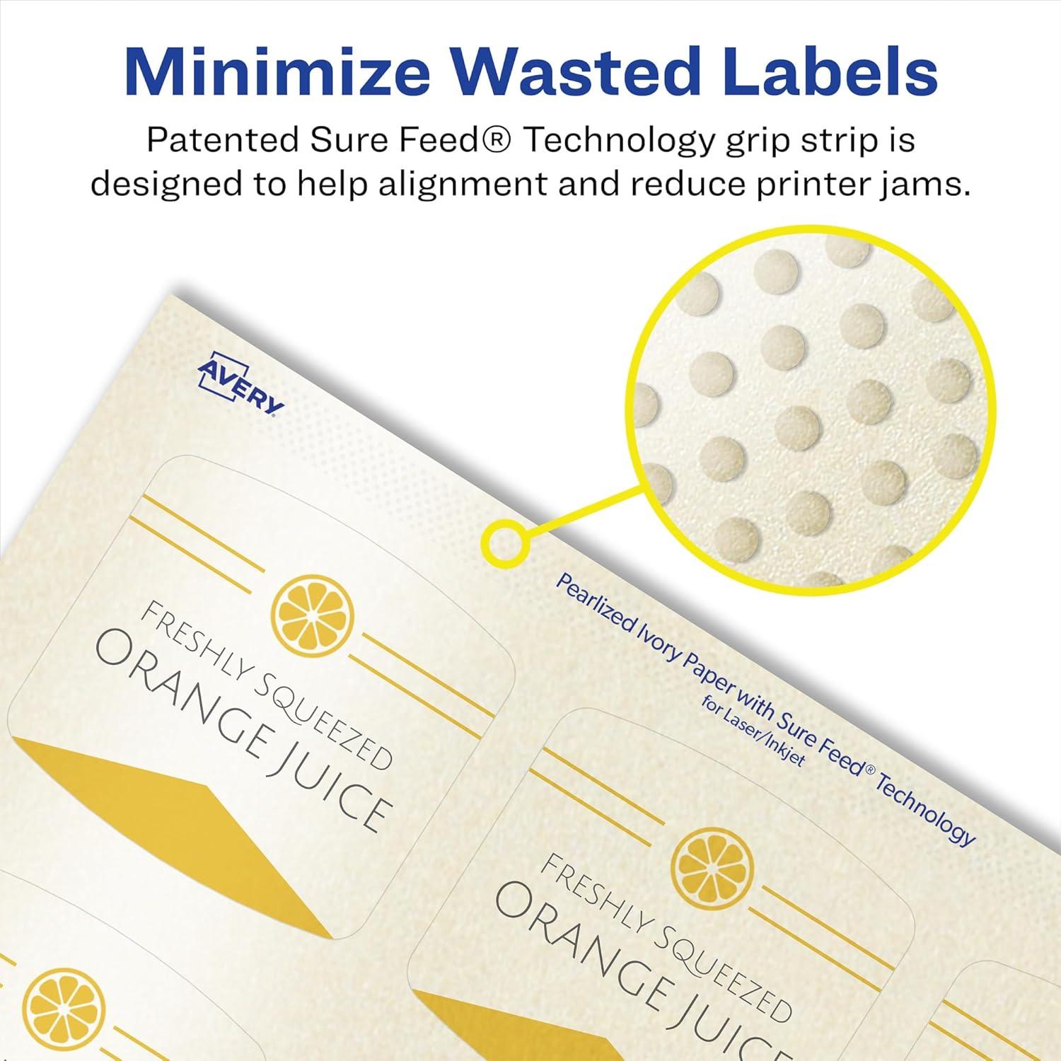 Avery labels with patented Sure Feed technology provide a more reliable feed through your printer, reducing misalignments and jams
