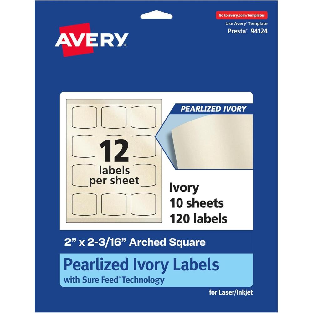 imageAvery Pearlized Ivory Arched Square Labels Sure Feed Technology PrinttoTheEdge 2quot x 2316quot 120 Pearlized Ivory Labels LaserInkjet Printable1 200 labels