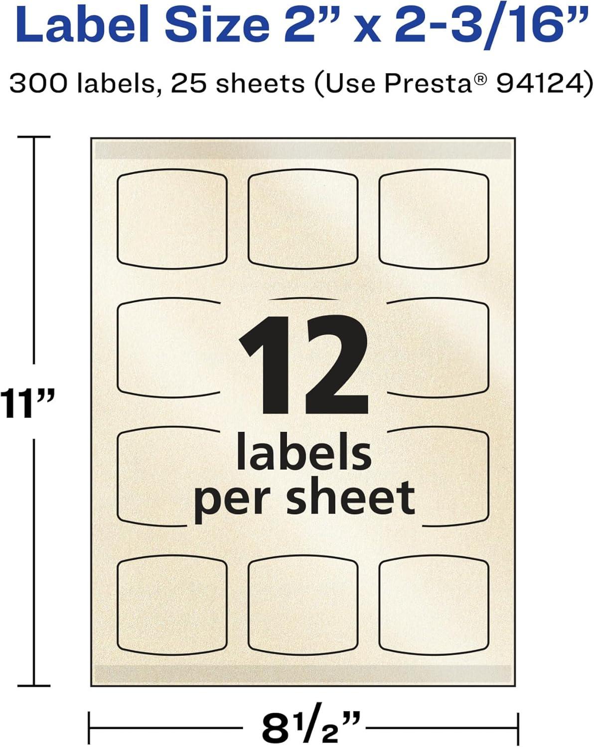 Avery Pearlized Ivory Arched Square Labels, Sure Feed Technology, Print-to-The-Edge, 2" x 2-3/16", 120 Pearlized Ivory Labels, Laser/Inkjet Printable(300 labels)