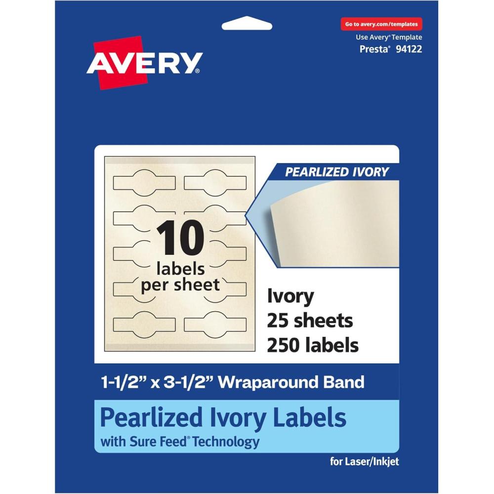 Avery Pearlized Ivory Cigar Labels, Sure Feed Technology, Print-to-The-Edge, 1.5" x 3.5", 100 Labels, Laser/Inkjet Compatible(250 labels)