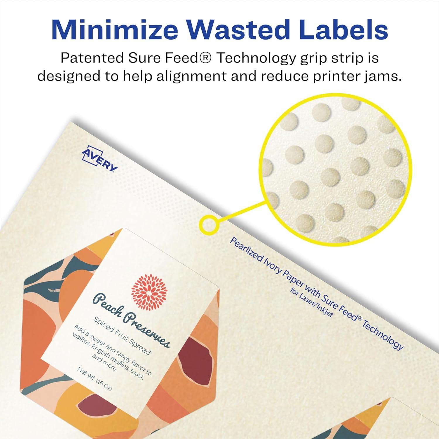 Avery Pearlized Ivory Hexagon Labels, Sure Feed Technology, Print-to-The-Edge, 2-1/2" x 2-57/64", 60 Pearlized Ivory Labels, Laser/Inkjet Printable(600 labels)