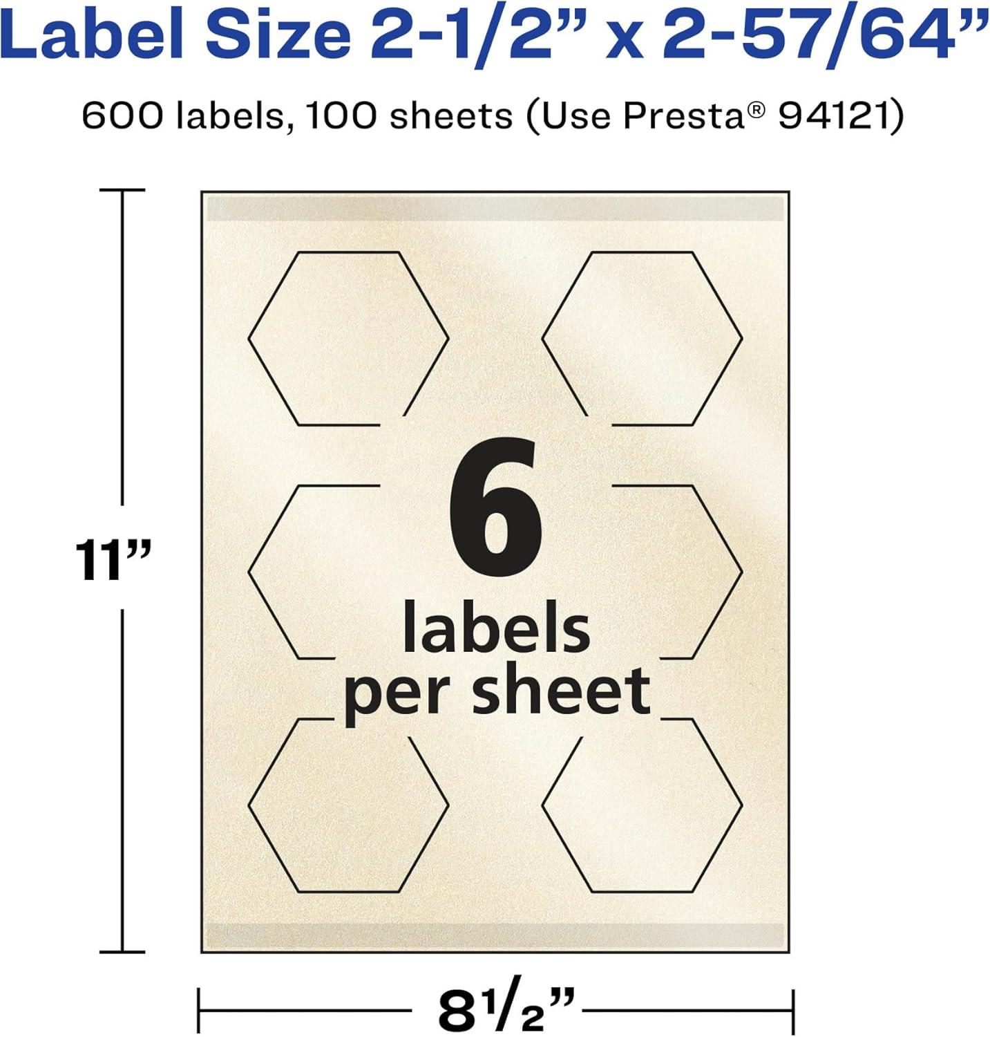 Avery Pearlized Ivory Hexagon Labels, Sure Feed Technology, Print-to-The-Edge, 2-1/2″ x 2-57/64″, 60 Pearlized Ivory Labels, Laser/Inkjet Printable(600 labels)