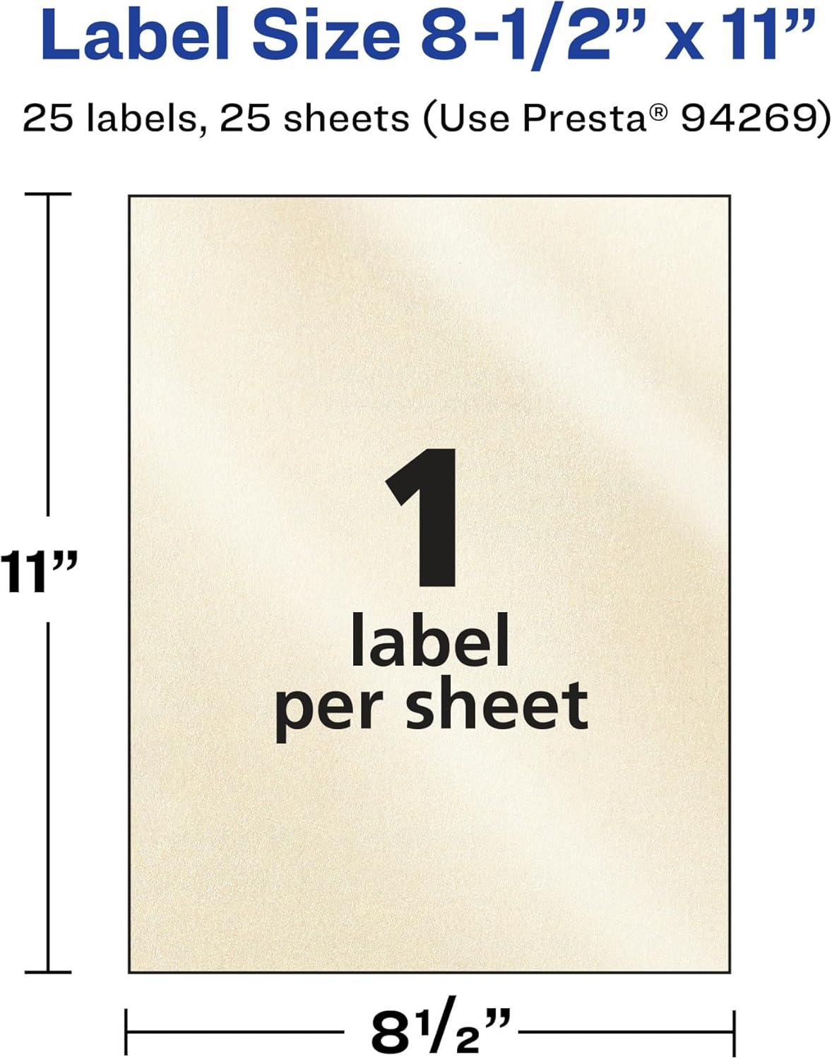 Avery Pearlized Ivory Rectangle Labels, 8.5″ x 11″, 10 Pearlized Ivory Labels, Laser/Inkjet Printable(25 labels)