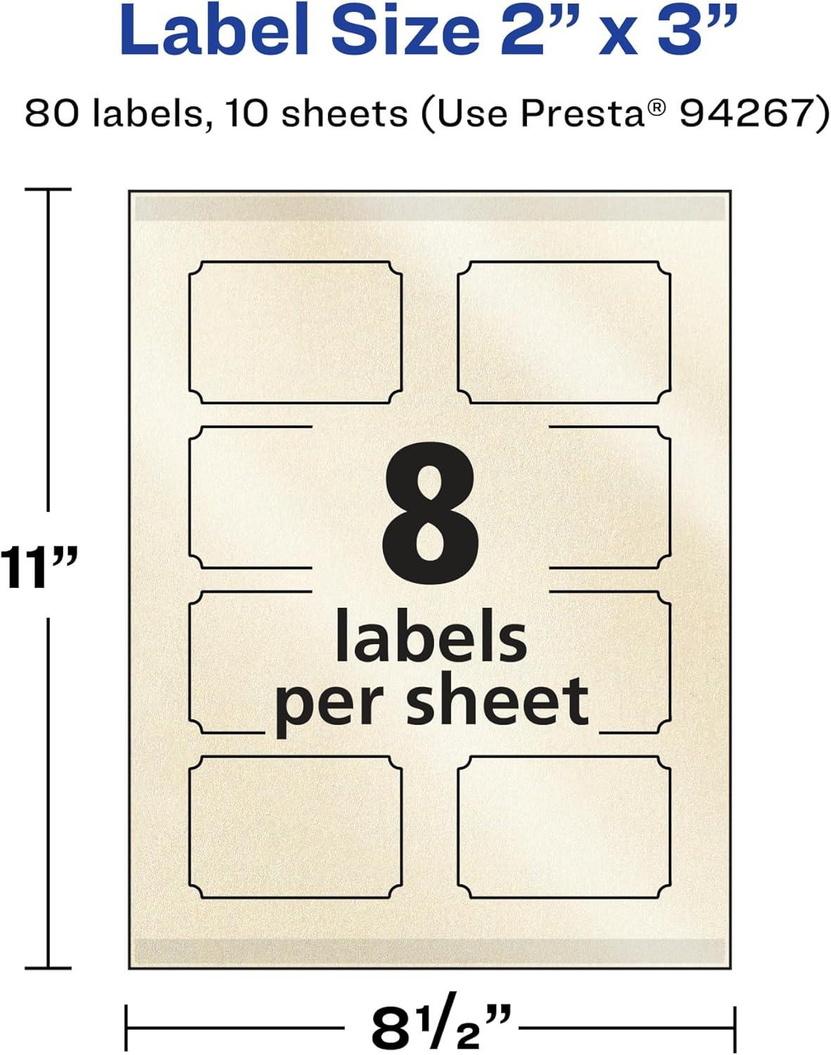 Avery Pearlized Ivory Rectangle Scalloped Labels, Sure Feed Technology, Print-to-The-Edge, 2″ x 3″, 80 Pearlized Ivory Labels, Laser/Inkjet Printable(80 labels)