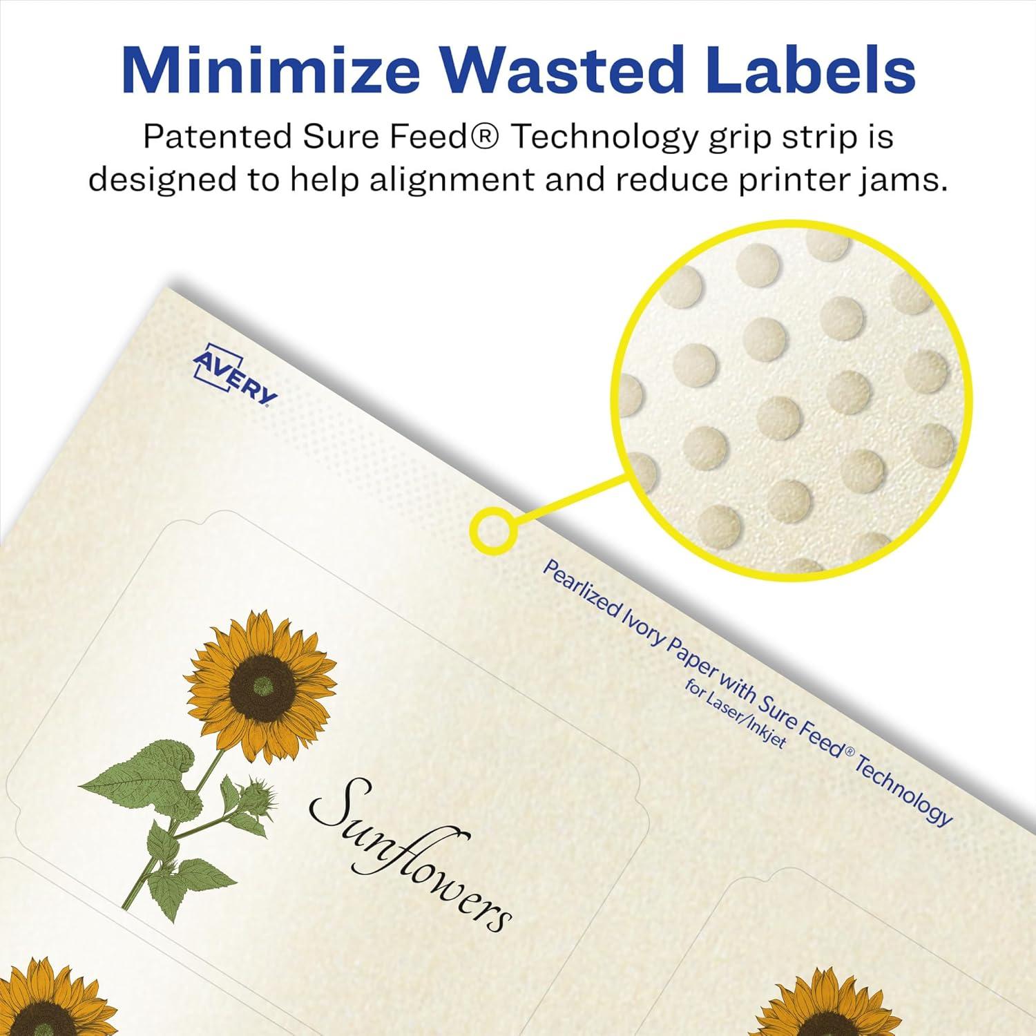 Avery labels with patented Sure Feed technology provide a more reliable feed through your printer, reducing misalignments and jams
