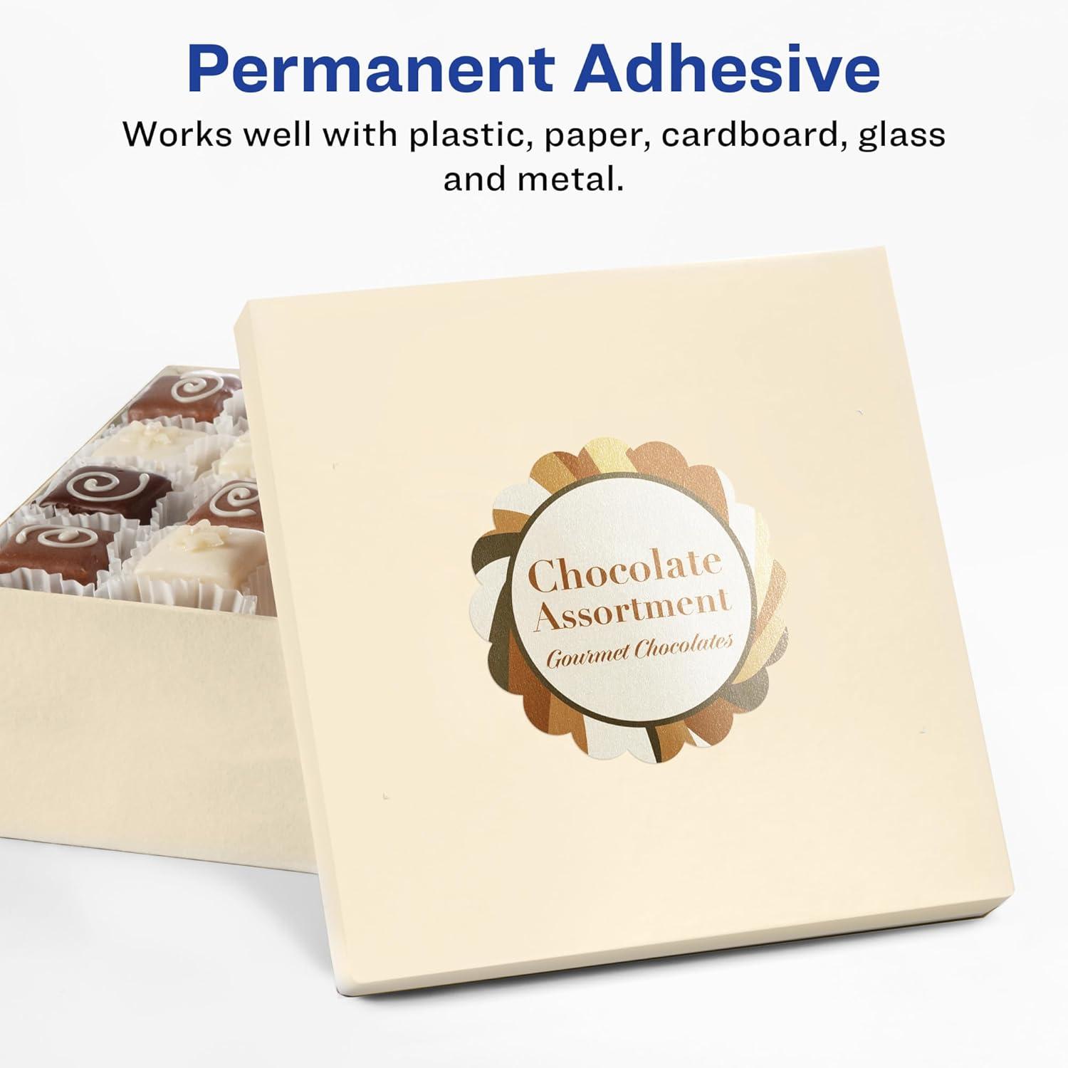 Avery Pearlized Ivory Round Scalloped Labels, Sure Feed Technology, Print-to-The-Edge, 2.5" Diameter, 225 Pearlized Ivory Labels, Laser/Inkjet Printable(900 labels)