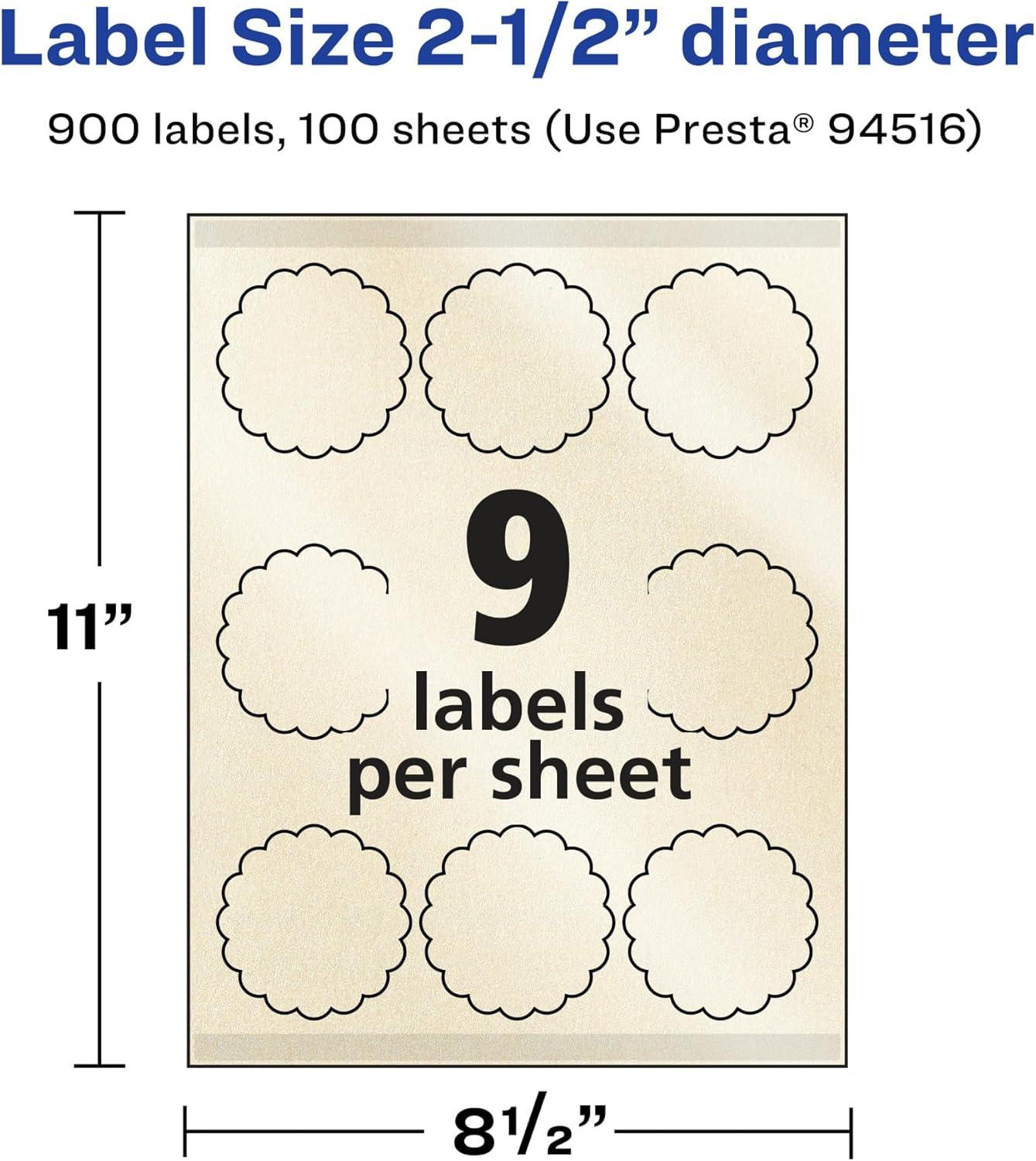 Avery Pearlized Ivory Round Scalloped Labels, Sure Feed Technology, Print-to-The-Edge, 2.5″ Diameter, 225 Pearlized Ivory Labels, Laser/Inkjet Printable(900 labels)