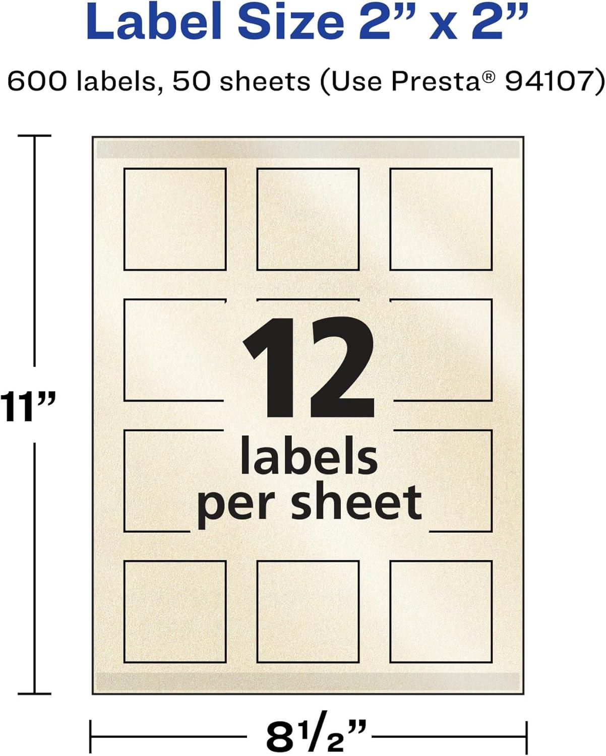 Avery Pearlized Ivory Square Labels, Sure Feed Technology, Print-to-The-Edge, 2″ x 2″, 120 Pearlized Ivory Labels, Laser/Inkjet Printable(600 labels)