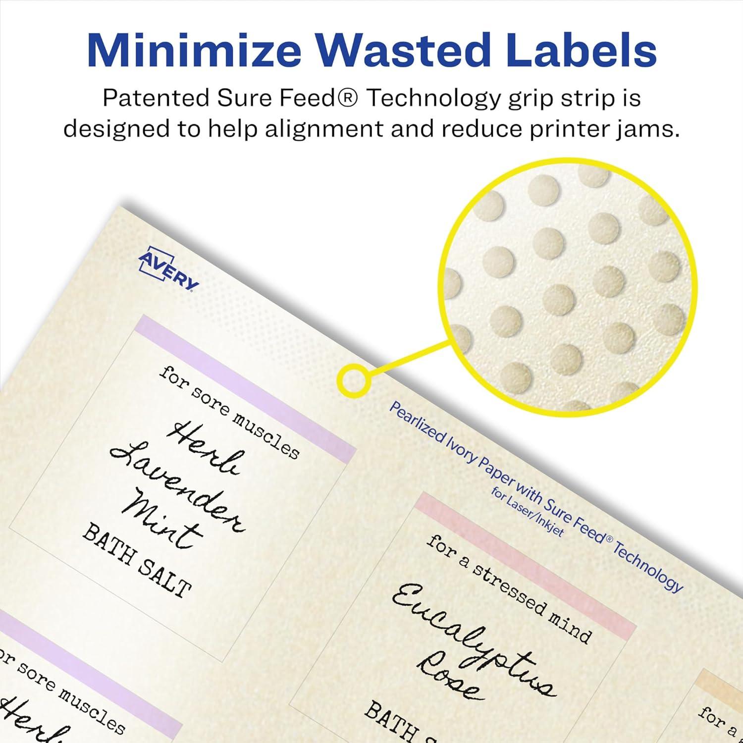 Avery Pearlized Ivory Square Labels, Sure Feed Technology, Print-to-The-Edge, 2″ x 2″, 120 Pearlized Ivory Labels, Laser/Inkjet Printable(300 labels)