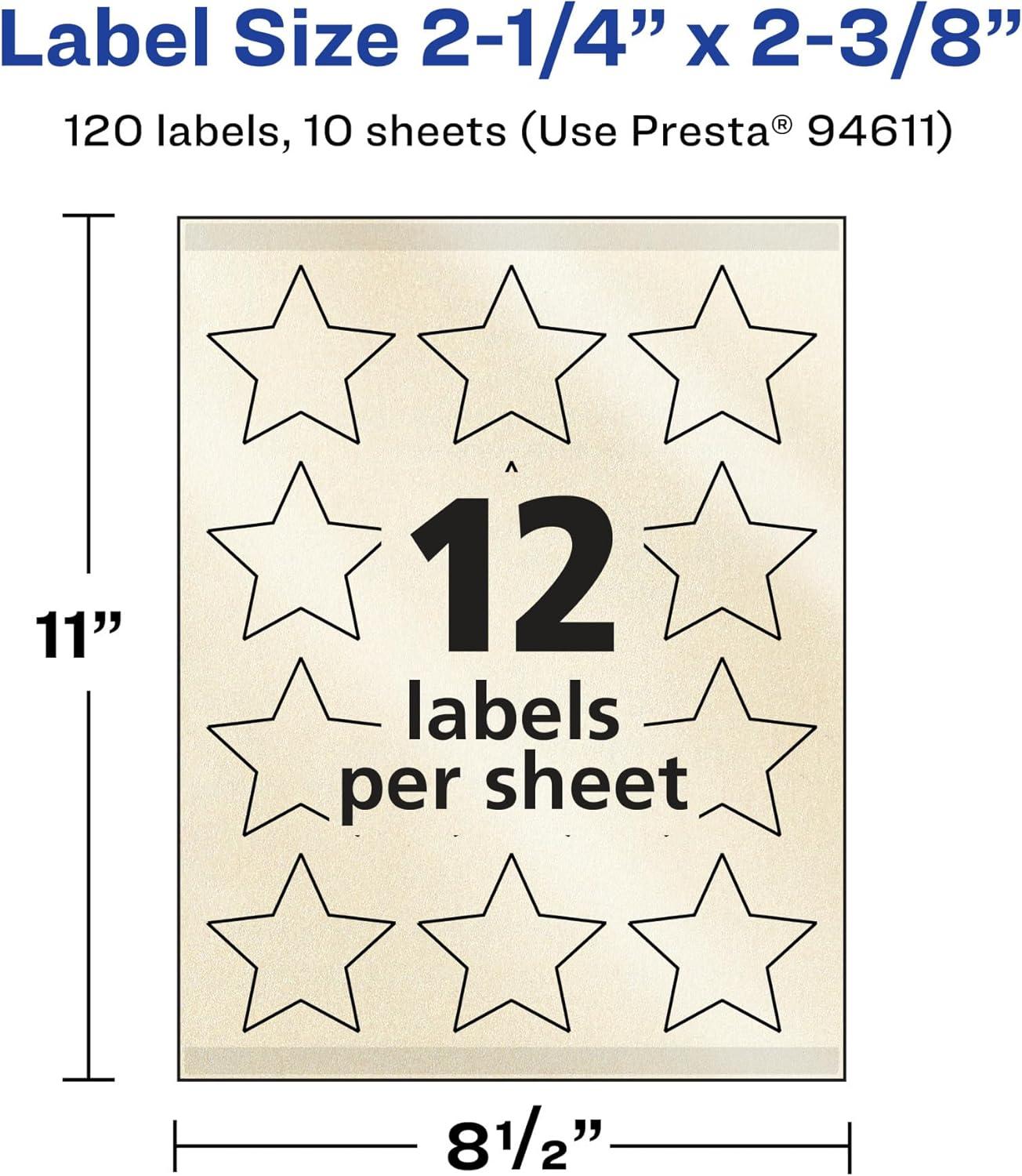 Avery Pearlized Ivory Star Labels, Sure Feed Technology, Print-to-The-Edge, 2-1/4″ x 2-3/8″, 120 Pearlized Ivory Labels, Laser/Inkjet Printable(1 200 labels)