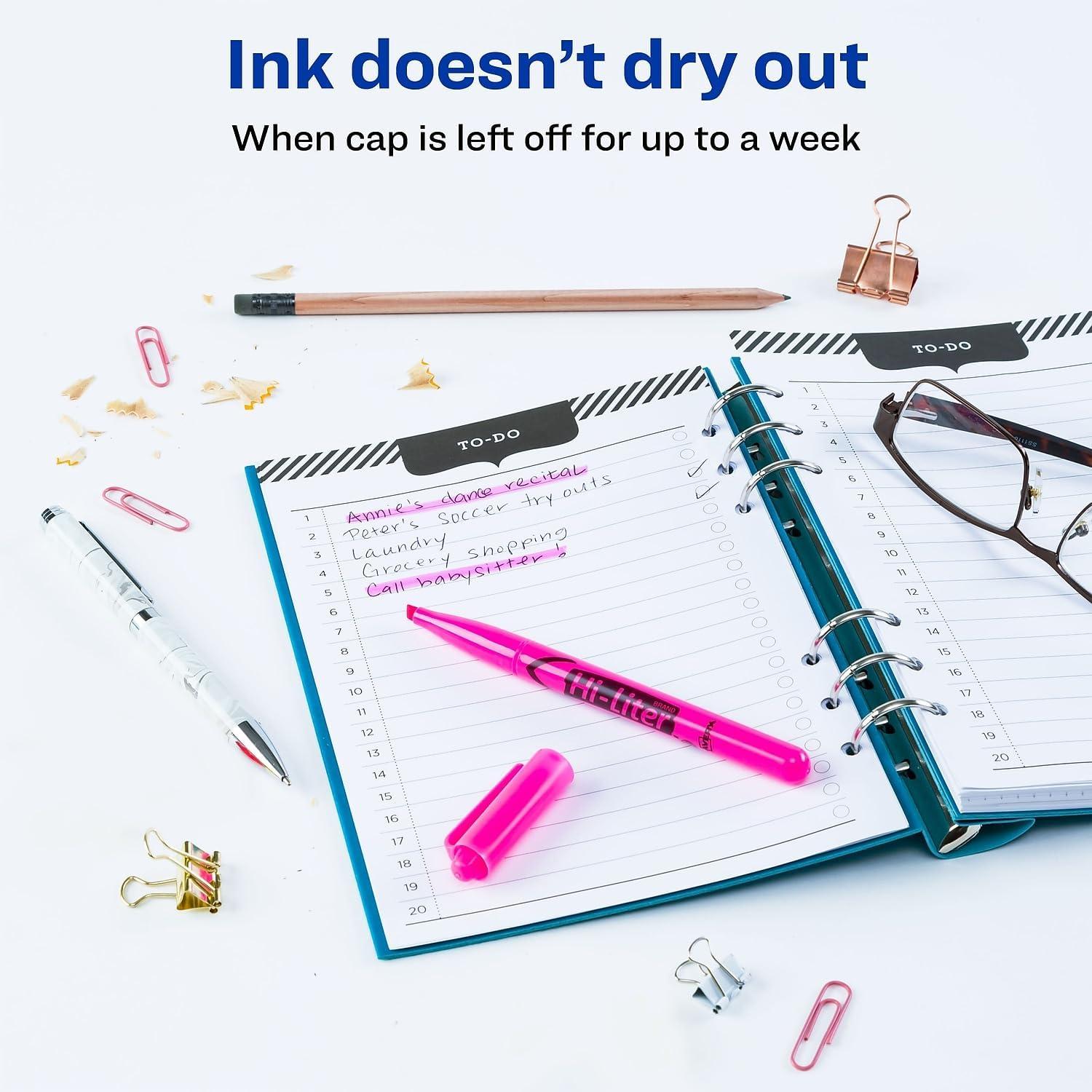 Fluorescent pen style highlighters feature durable plastic tips for smooth highlighting