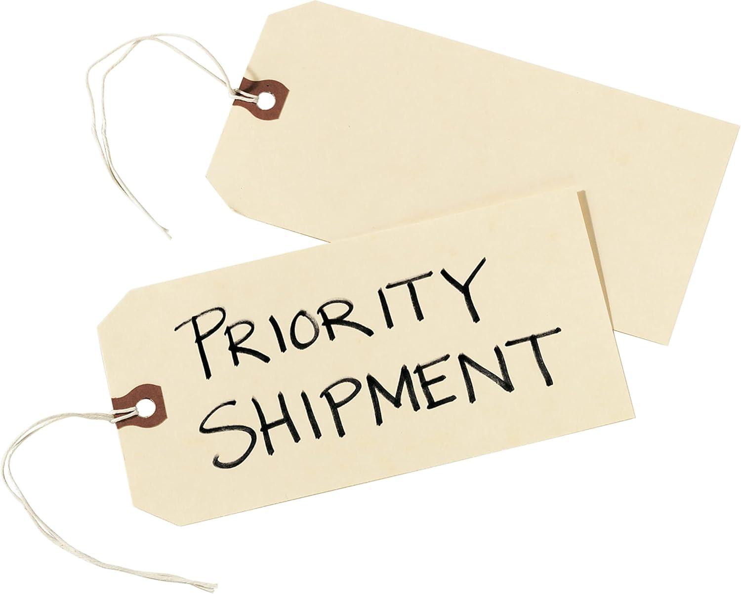 Strung shipping tags offer a smooth writing surface with a neutral background that makes your text stand out for easy reading. Attach the tag with the included string to ensure it stays securely bound to the item it represents. Each tag features a reinforced eyelet for extra strength to allow the string to hold the tag firmly without ripping through the cardstock. Tags are made of 11.5 point stock and are handwrite only.